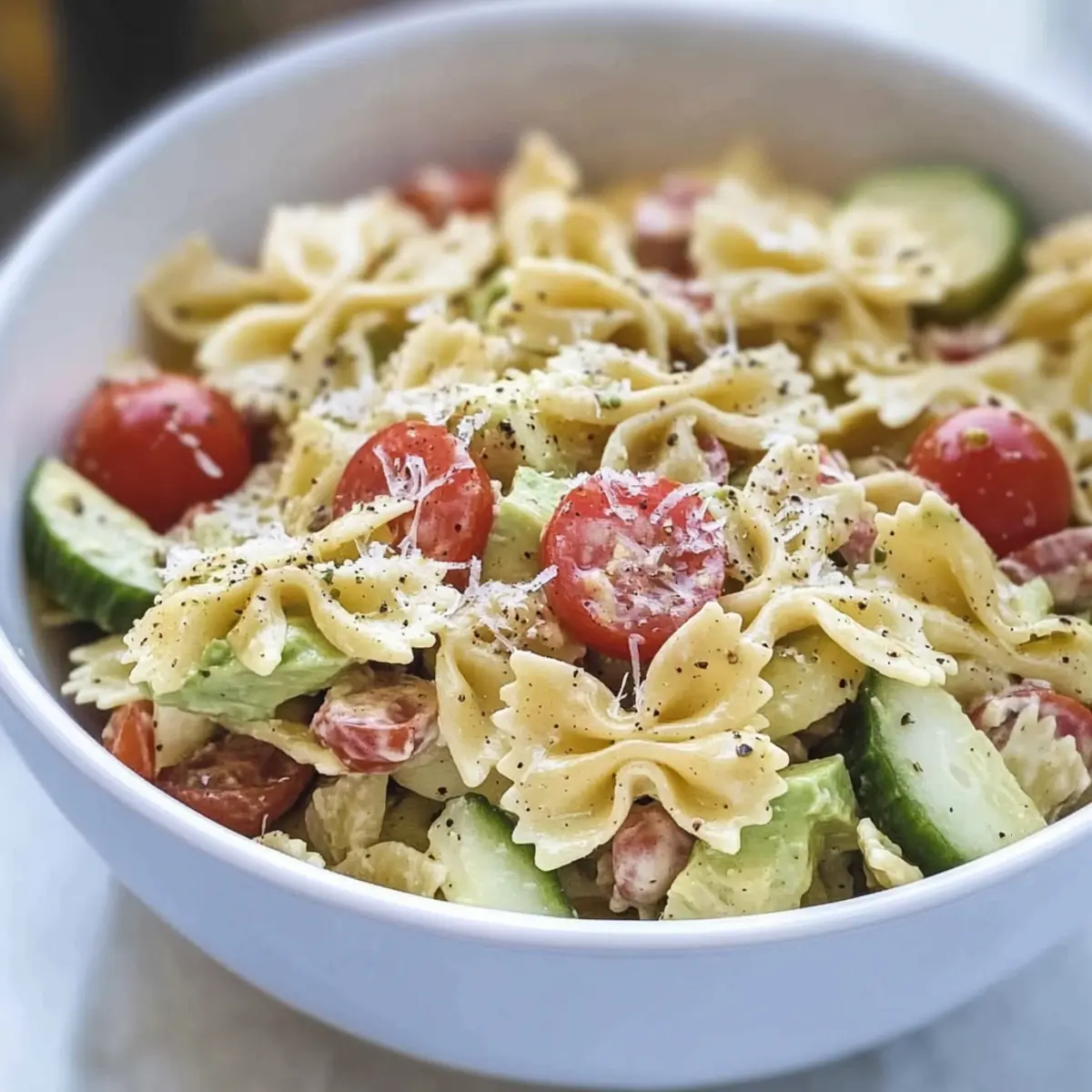 These delightful Avocado Pasta Salad recipe components are perfect for meal prep enthusiasts! You can cook the bow tie pasta and combine it with diced onions and cucumbers up to 24 hours in advance, refrigerating them in an airtight container. To maintain the quality of the avocados, it’s best to prepare and add them just before serving to prevent browning. When you’re ready to enjoy, simply mix in the avocados and the grape tomatoes, drizzle with Italian dressing, toss gently, and sprinkle with Parmesan cheese. You’ll have a fresh and tasty salad that’s just as delicious as if it were made on the spot, saving you precious time on busy weeknights!