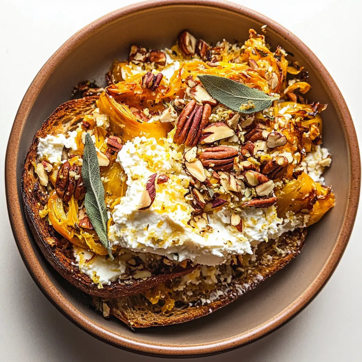 Textural Delight: Enjoy a medley of crunchy nuts and crispy sage atop creamy ricotta for a satisfying contrast in every bite.