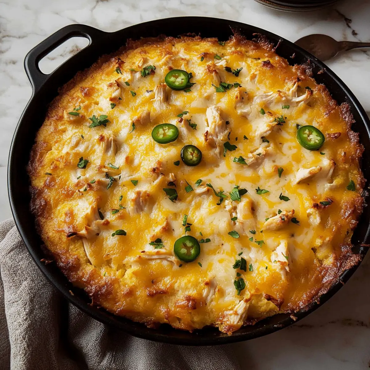 Sprinkle a generous layer of Monterey Jack and Cheddar cheese over the chicken filling, then add diced jalapeño for a delightful kick, if desired. This cheesy topping will melt beautifully, contributing to the creamy texture of the Baked Chicken Tamale Pie Casserole.