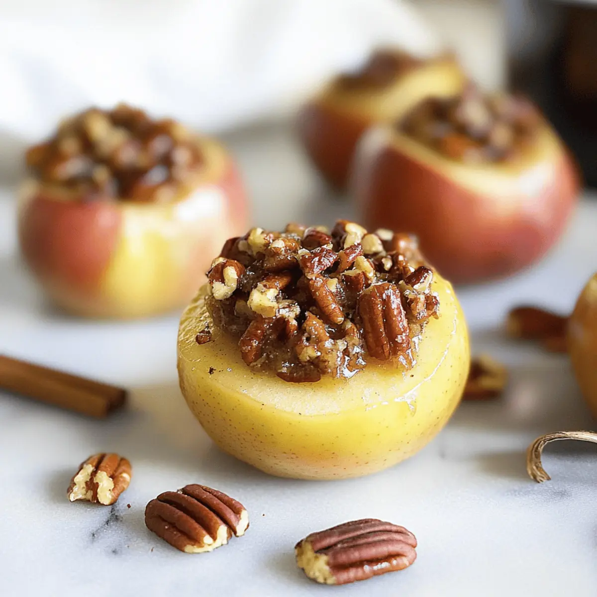 - Fill each apple half with the pecan topping, pressing down slightly to ensure it adheres.