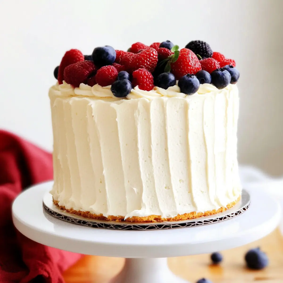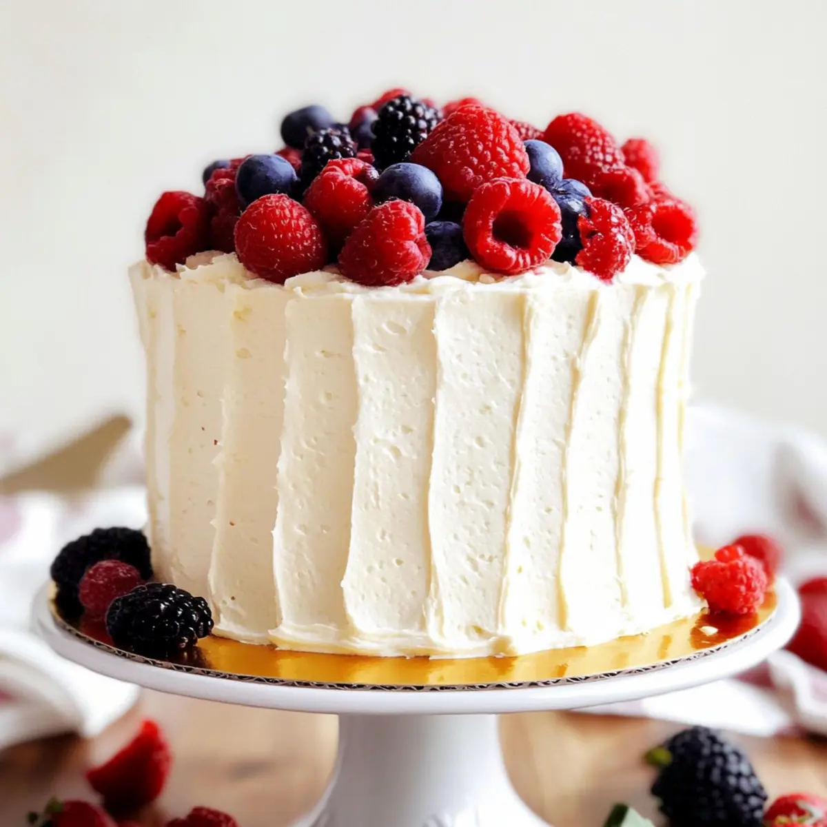 Rich Mascarpone Frosting: The creamy mascarpone and whipped cream create a luscious frosting that complements the fresh berries perfectly.