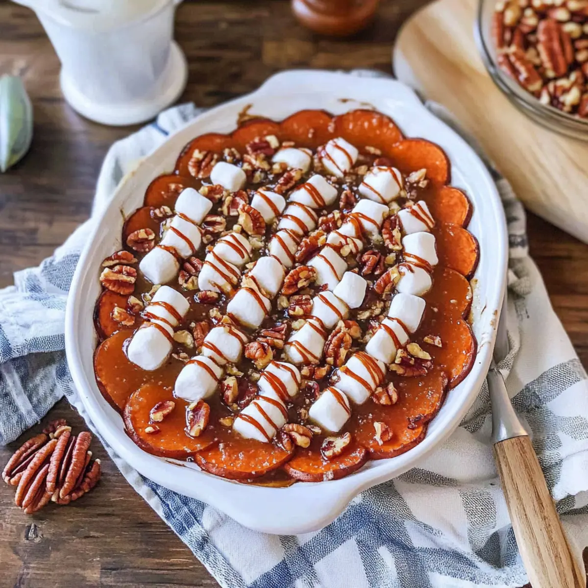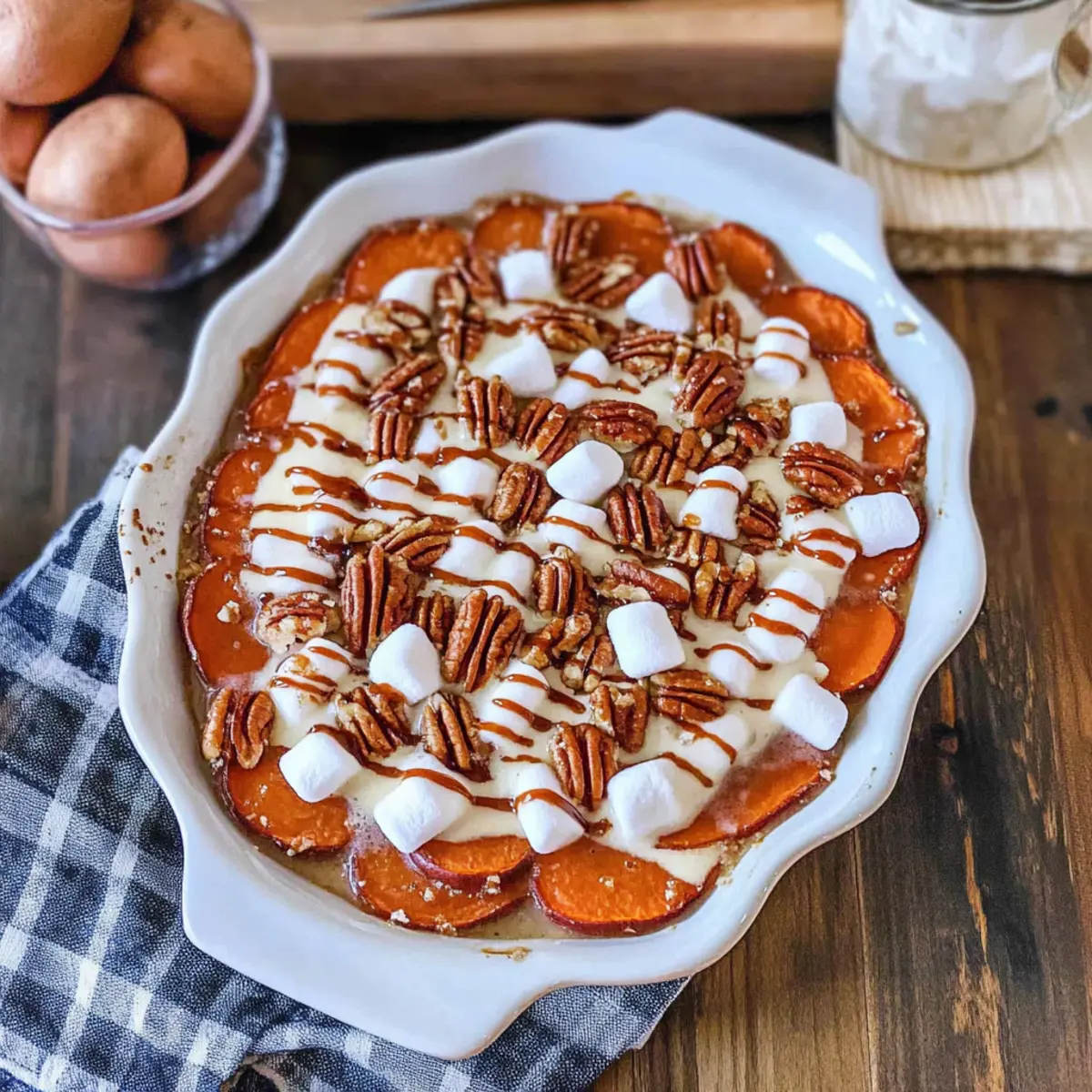 Crowd-Pleasing Delight: Topped with fluffy mini marshmallows and crunchy pecans, this recipe is guaranteed to impress your guests and become a new holiday favorite.
