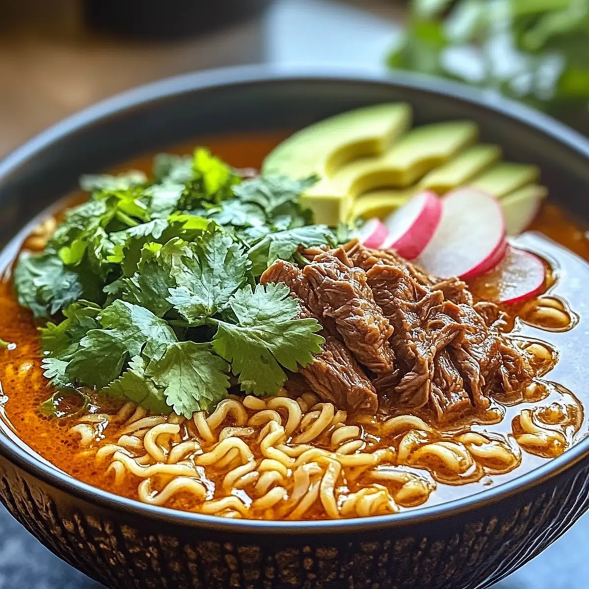 Indulge in the flavors of this Birria Ramen with Tender Beef and make every bite an adventure!