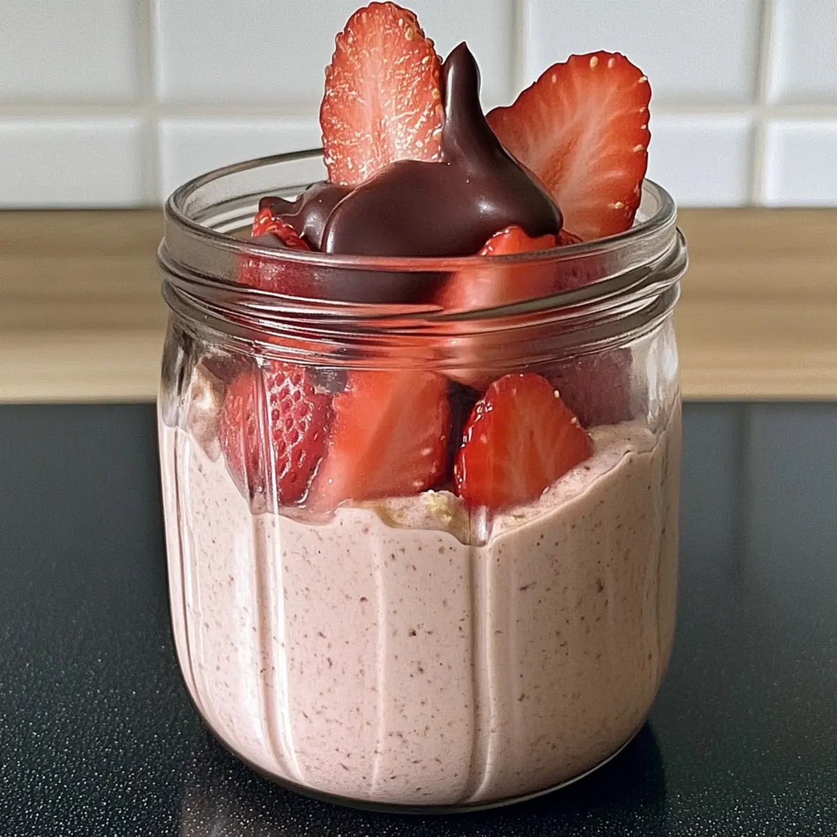 Creamy Blended Strawberry Oats with a Chocolate Surprise