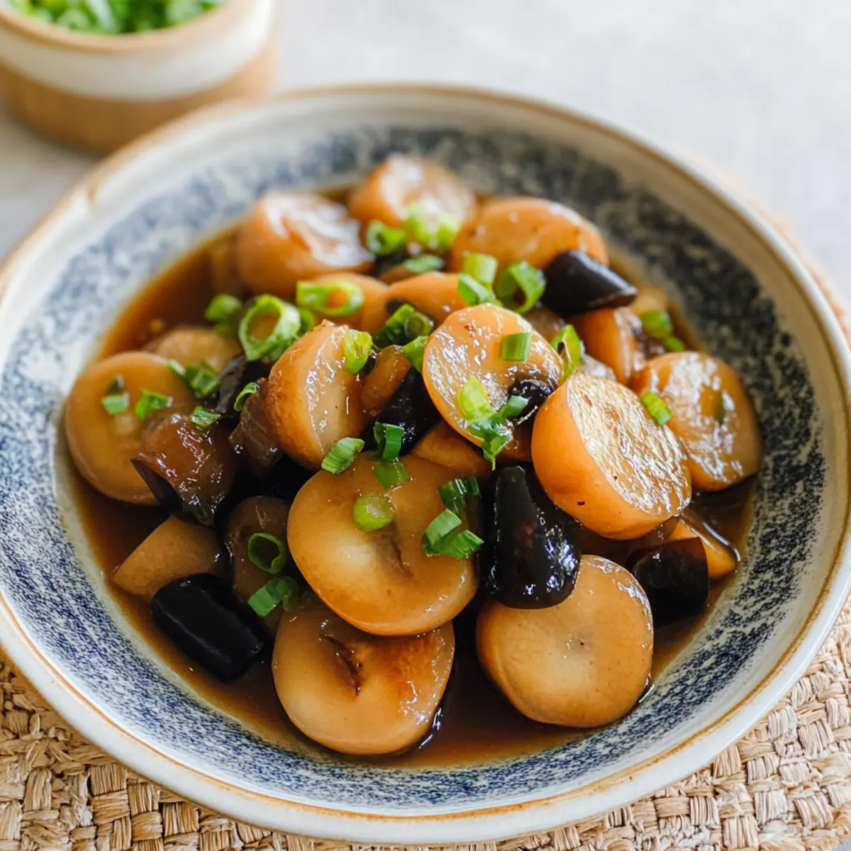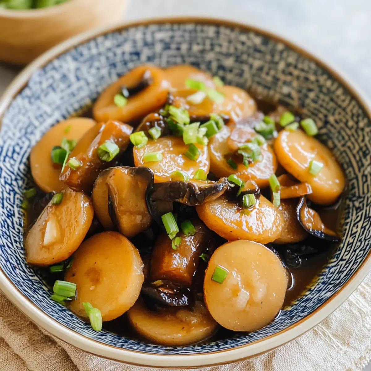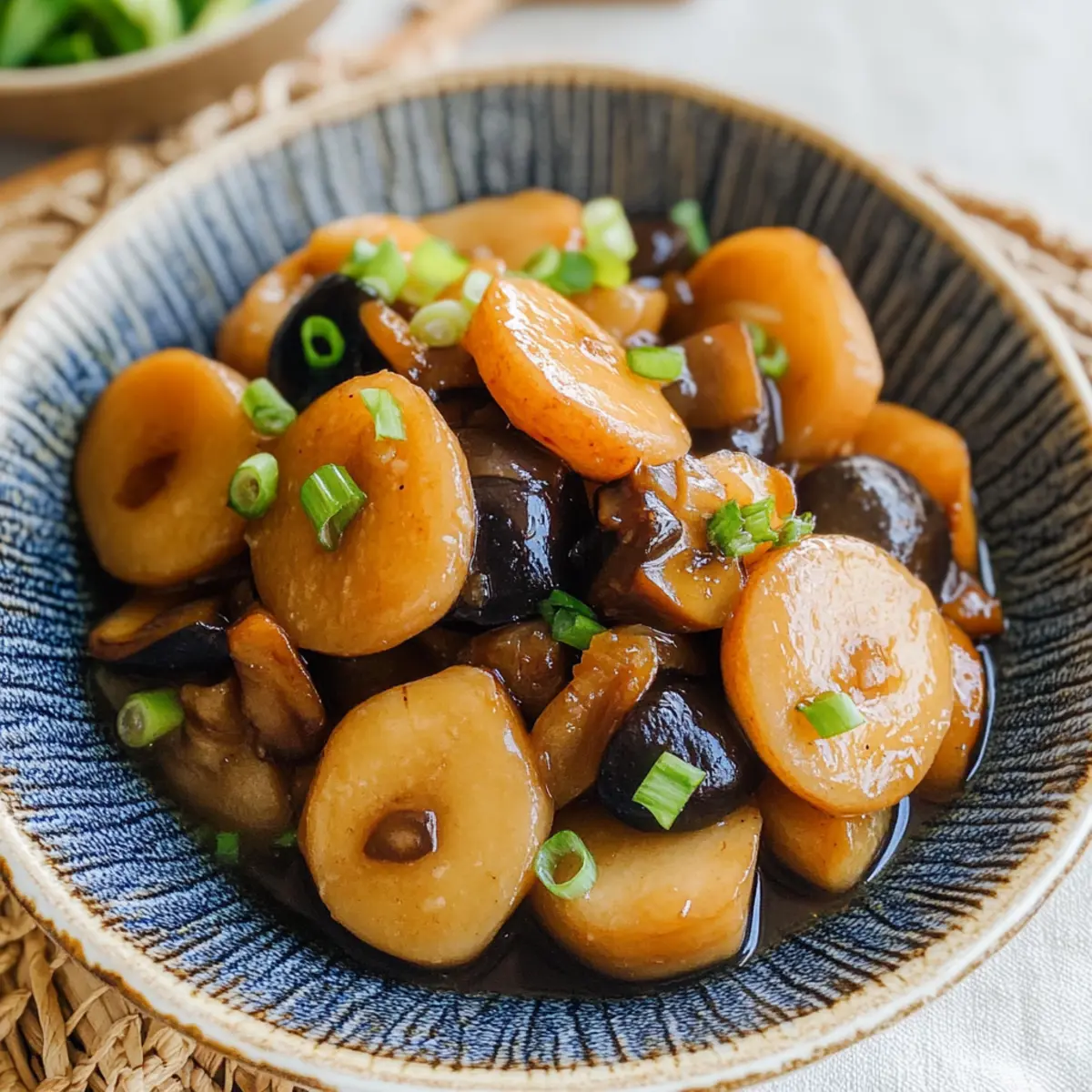 Flavorful and Nutritious: This dish combines the natural sweetness of daikon radish with the umami depth of shiitake mushrooms, creating a delightful harmony of taste. Quick and Easy Prep: With straightforward steps, you’ll have a satisfying side ready in no time, perfect for busy evenings. Versatile Ingredients: Feel free to swap in other root vegetables like carrots or experiment with different mushrooms for a unique twist. Garnish Delight: Top with chopped scallions for that fresh, crisp bite that enhances the overall experience. Serve alongside steamed rice or stir-fried greens to create a well-rounded meal. If you’re a fan of comforting dishes, don’t miss out on this recipe!