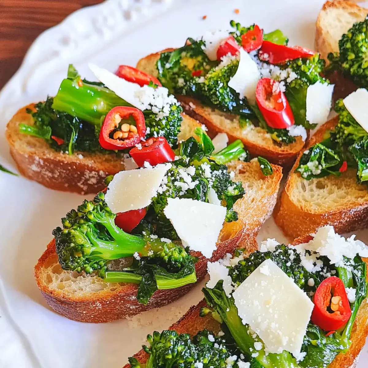 As I spread the vibrant green mixture on freshly toasted baguette slices, my kitchen fills with the tantalizing aroma of sautéed garlic and earthy broccoli rabe. These Broccoli Rabe Tartines with Chilies and Pecorino are not just a feast for the eyes; they’re a delightful two-bite explosion of flavors ready to impress at any gathering. The sharp Pecorino perfectly balances the spicy kick of chilies, giving this easy-to-make appetizer an irresistible charm that won’t have your guests waiting for the main course. Plus, they’re a fantastic vegetarian option that you can whip up in no time, allowing you to spend less time cooking and more time enjoying good company. Curious about how to make these delectable bites shine even brighter? Let’s dive into the recipe!