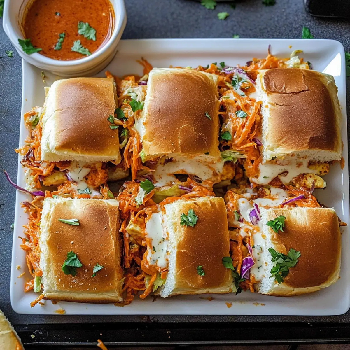 After baking, let the Buffalo Tofu Sliders cool slightly before serving. You can pile the slaw directly on top of the warm sliders for added crunch or serve it on the side for guests to add as they like. These sliders not only deliver bold flavors but also create a stunning presentation that’s sure to impress everyone at your gathering!