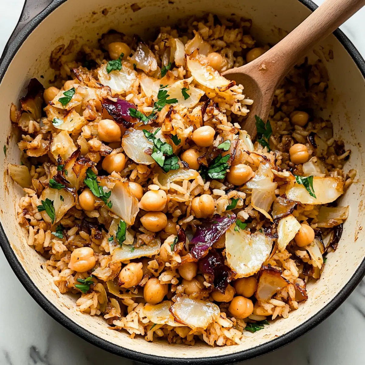 Spiced Chickpeas & Rice with Roasted Cabbage for Pure Comfort