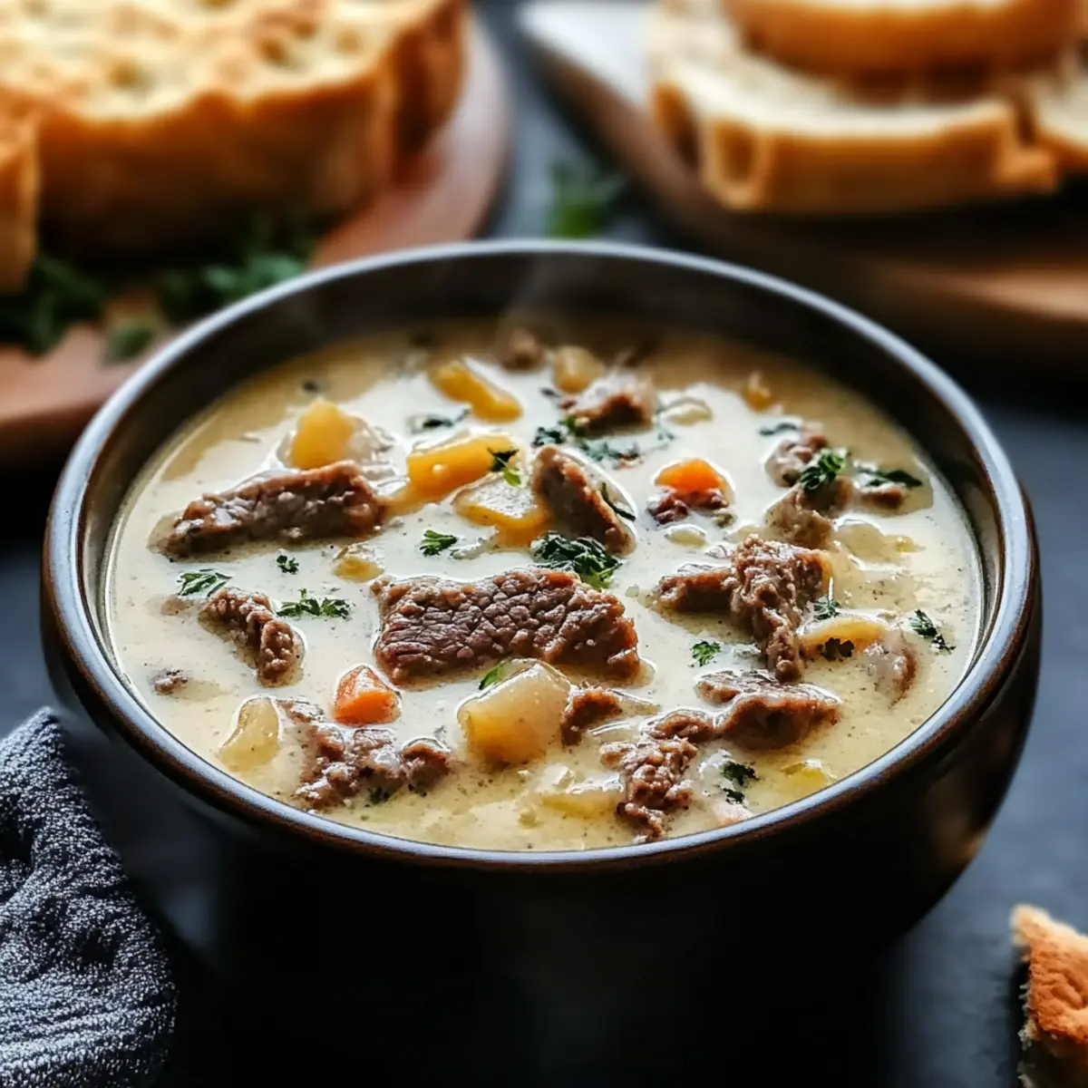 Creamy Philly Cheese Steak Soup for Ultimate Cozy Comfort