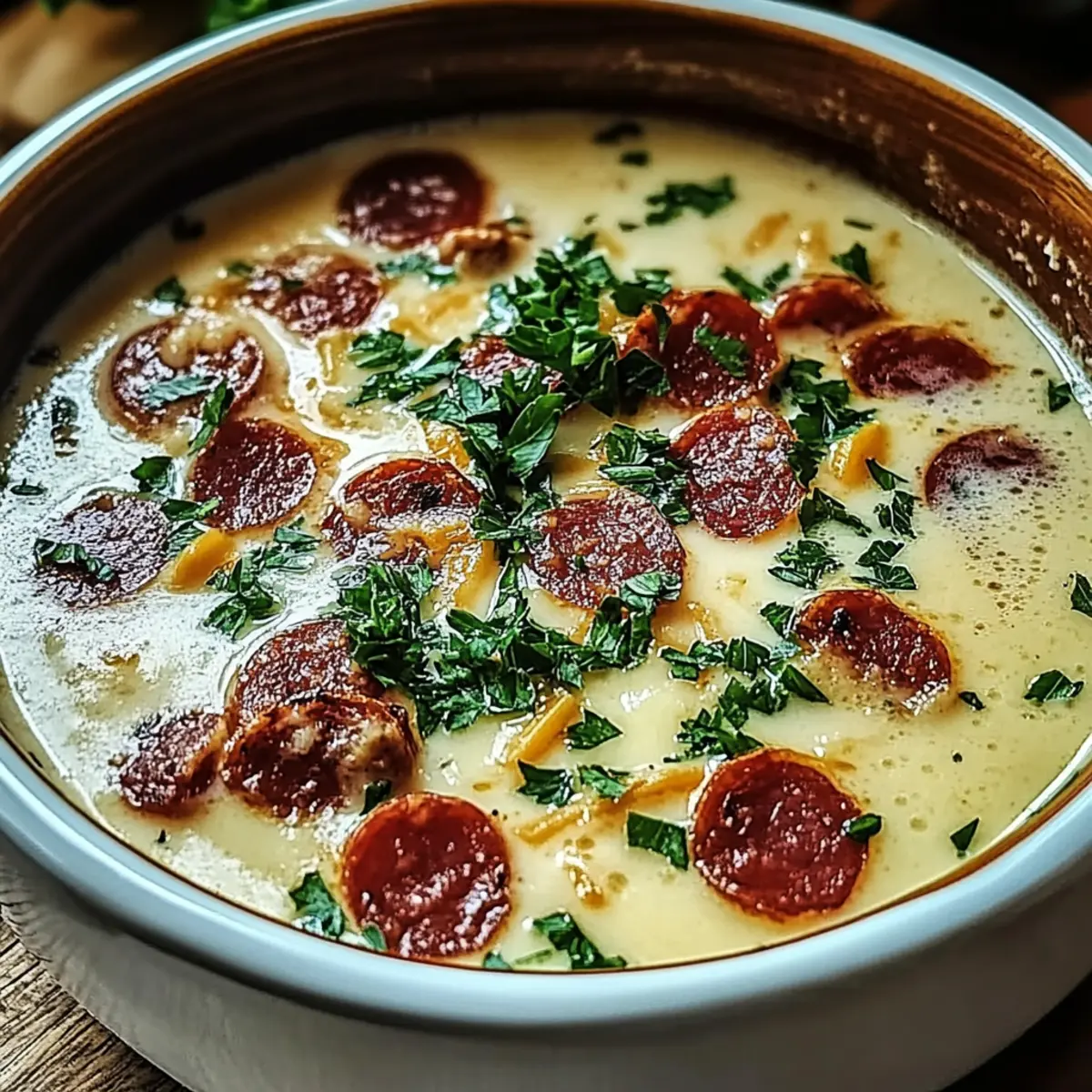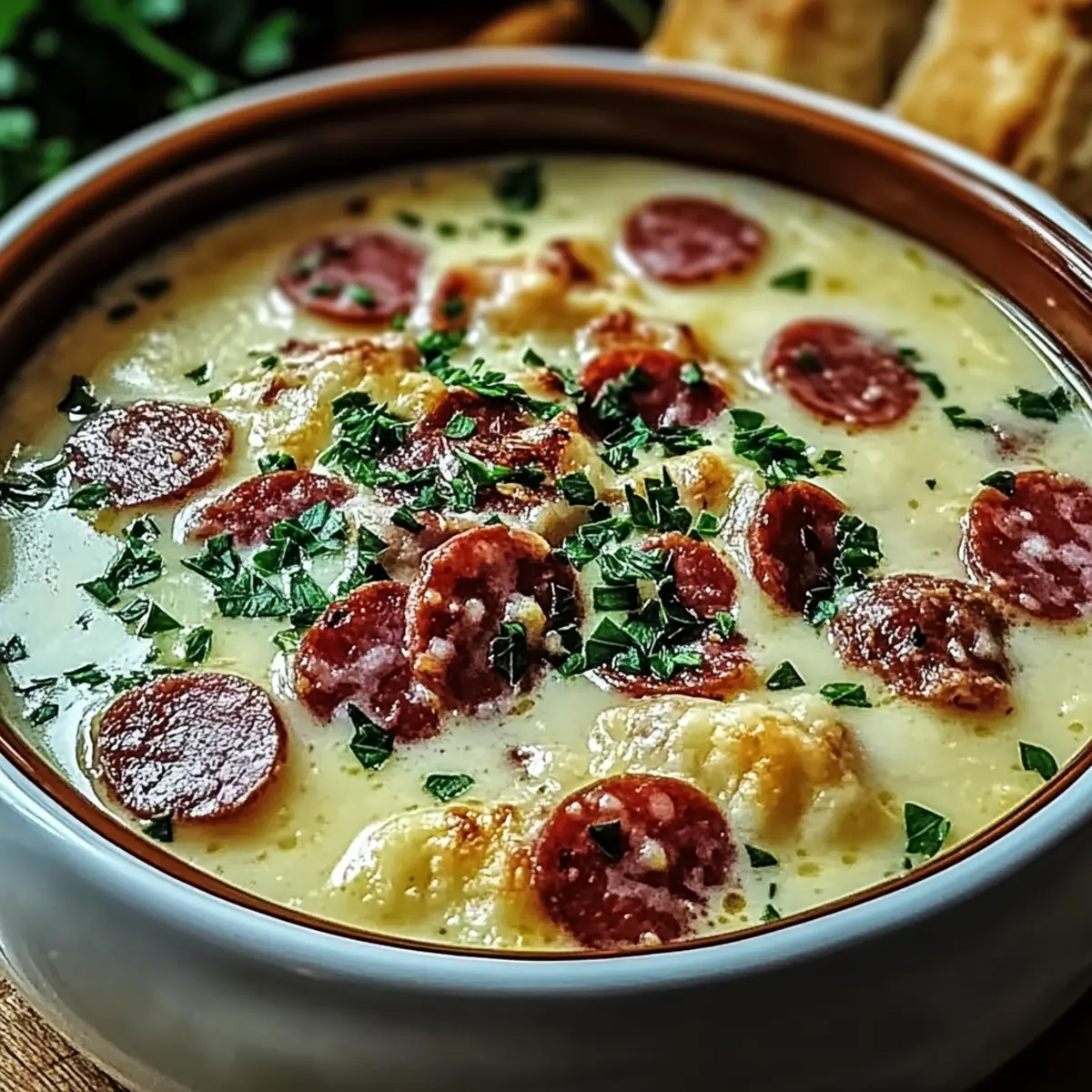 Ladle the creamy charcuterie soup into bowls, garnishing with 1 tablespoon of freshly chopped parsley for a touch of color and freshness. Serve immediately with crusty bread or your choice of accompaniments, inviting everyone to dive into the heartwarming experience of this delightful soup.