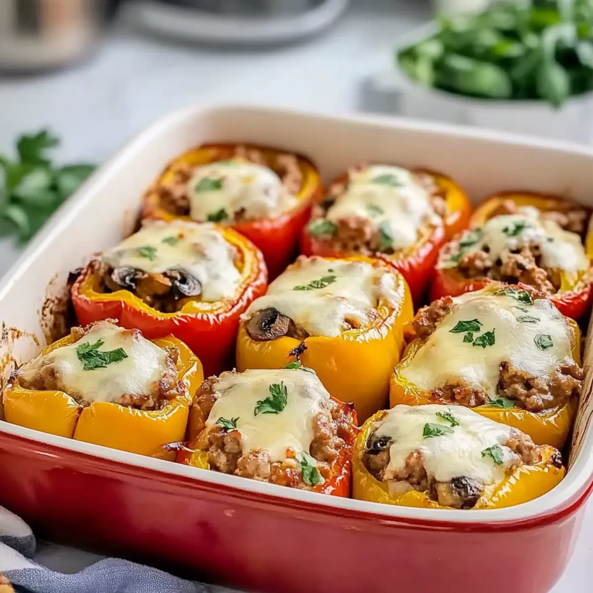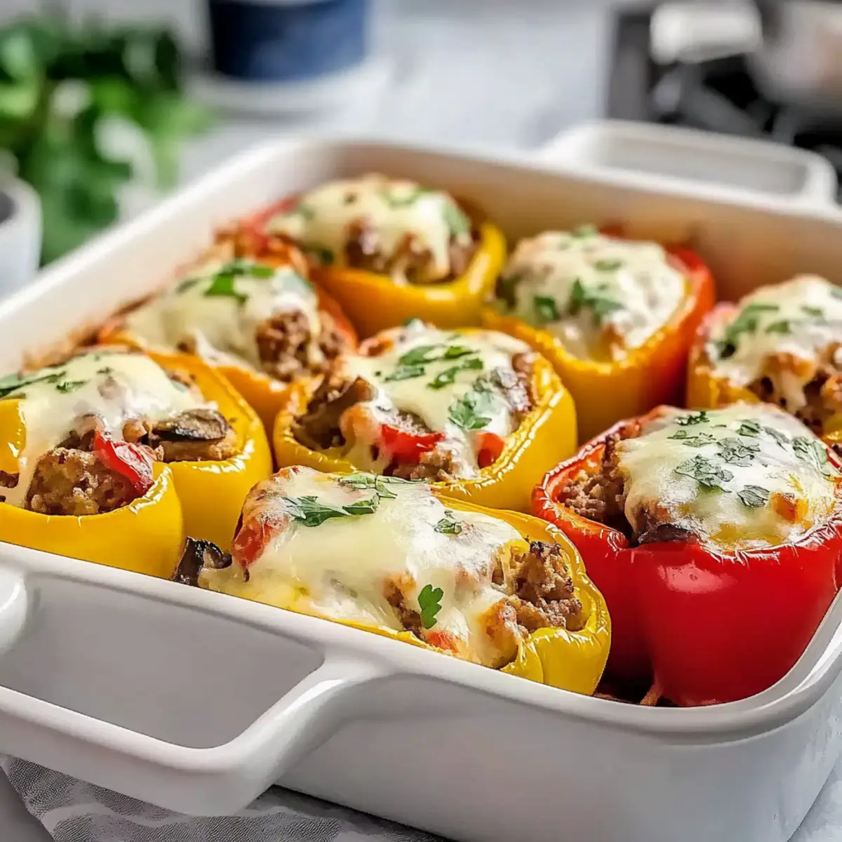 These Cheese Steak Stuffed Peppers are perfect for meal prep enthusiasts! You can prepare the filling (ground beef, onions, mushrooms, and seasoning) up to 3 days in advance, storing it in an airtight container in the refrigerator to keep it fresh and flavorful. Additionally, you can also stuff the peppers ahead of time and keep them assembled in the fridge for up to 24 hours before baking. When you’re ready to serve, simply top them with mozzarella cheese and bake at 375°F (190°C) for 25-30 minutes until the cheese is melted and bubbly. This approach guarantees that your busy weeknights will be filled with delicious, homemade meals with minimal effort!