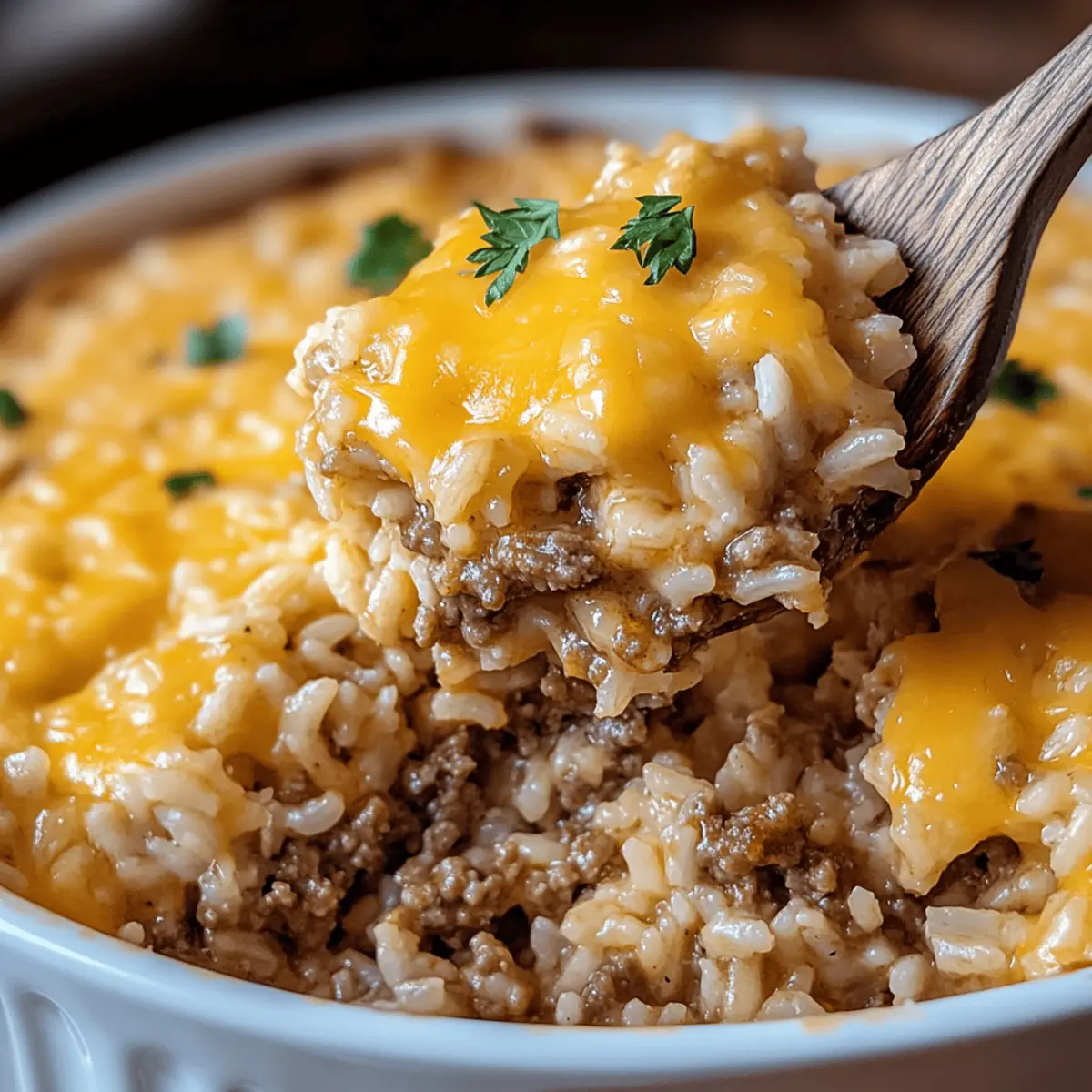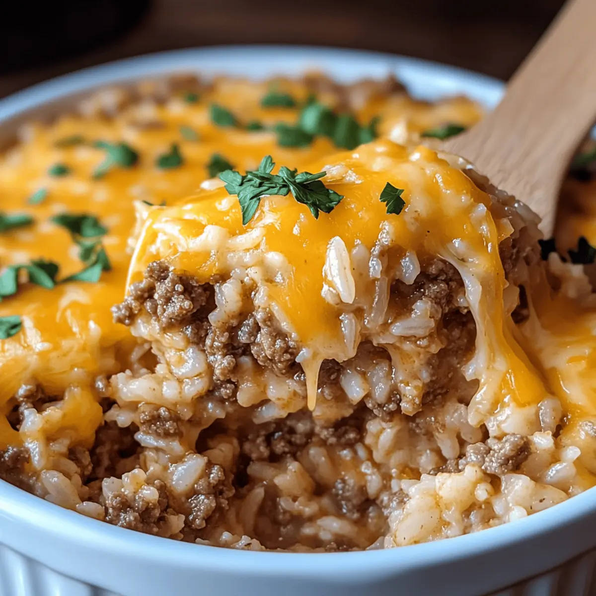 After baking, let the casserole rest for about 5 minutes before serving. This allows it to set and makes for easier portioning. If desired, garnish with chopped parsley for a pop of freshness and color to your delicious Cheesy Ground Beef and Rice Casserole.