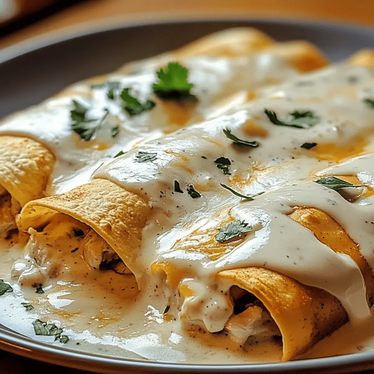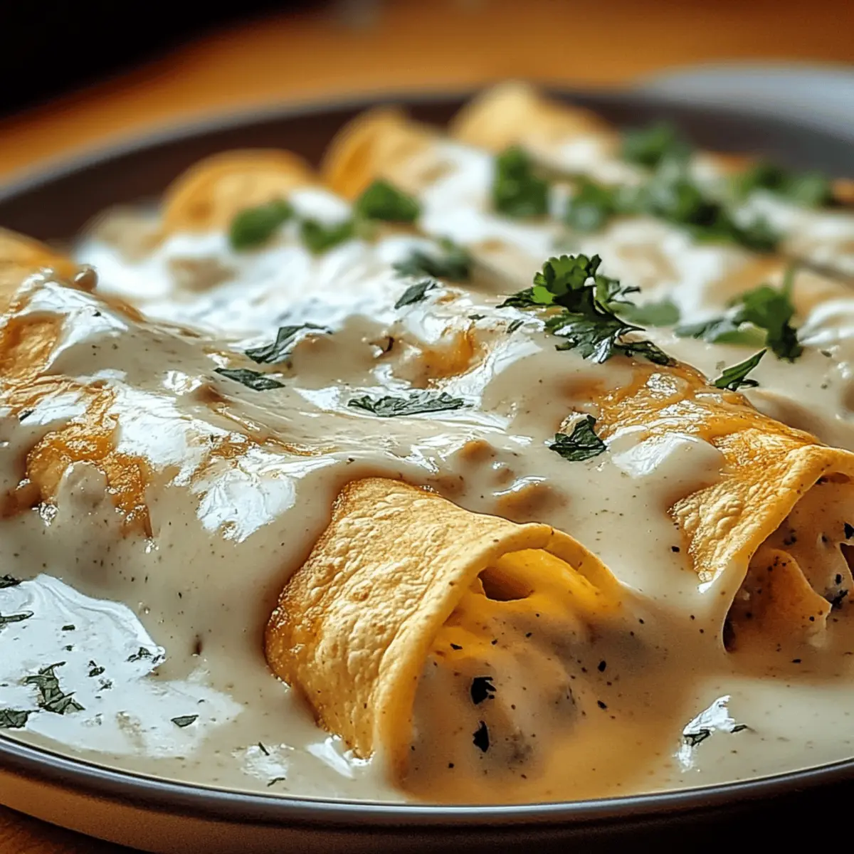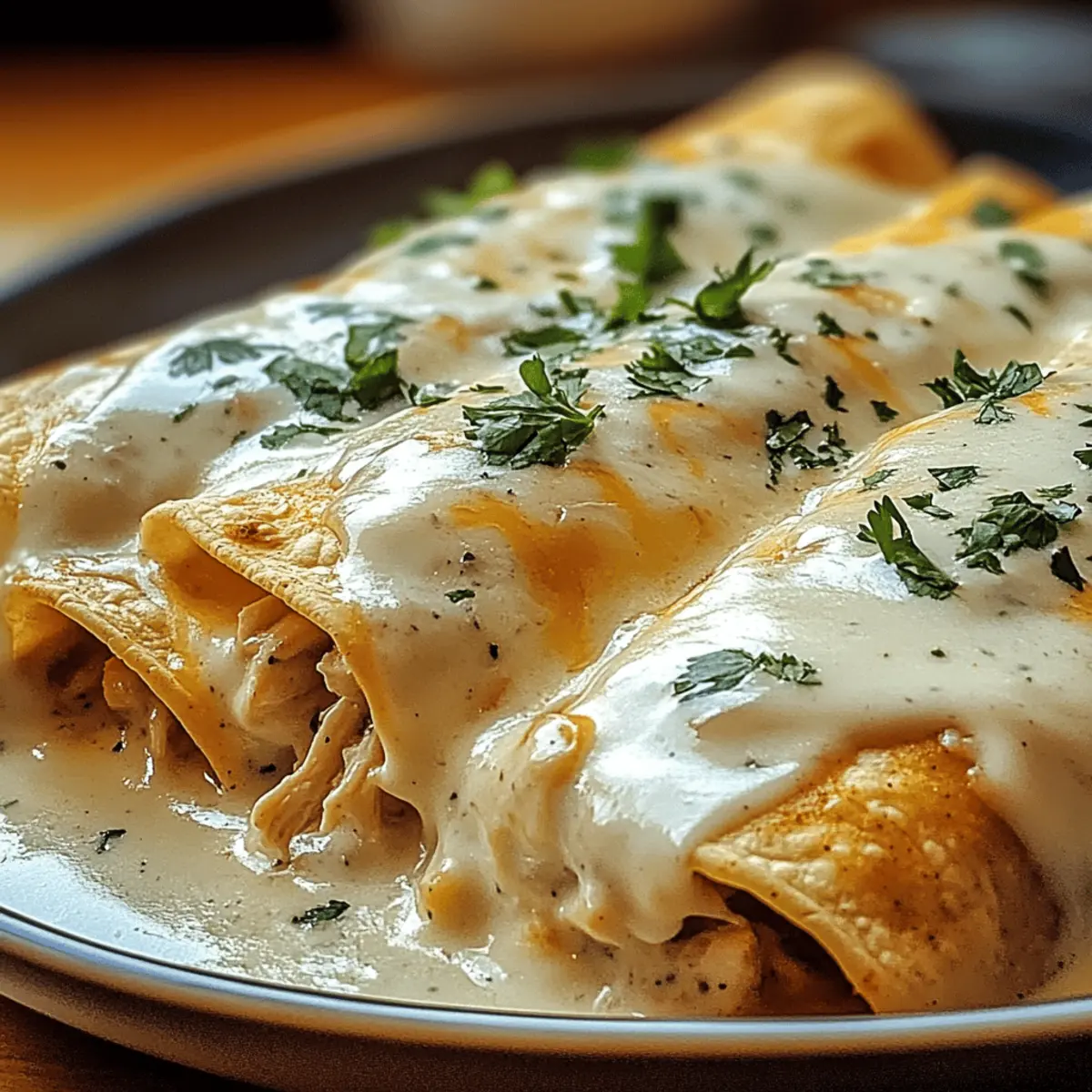 Comforting and homemade: With tender chicken and creamy sauce, these enchiladas bring the warmth of home to your table.