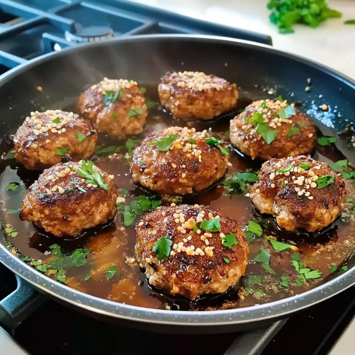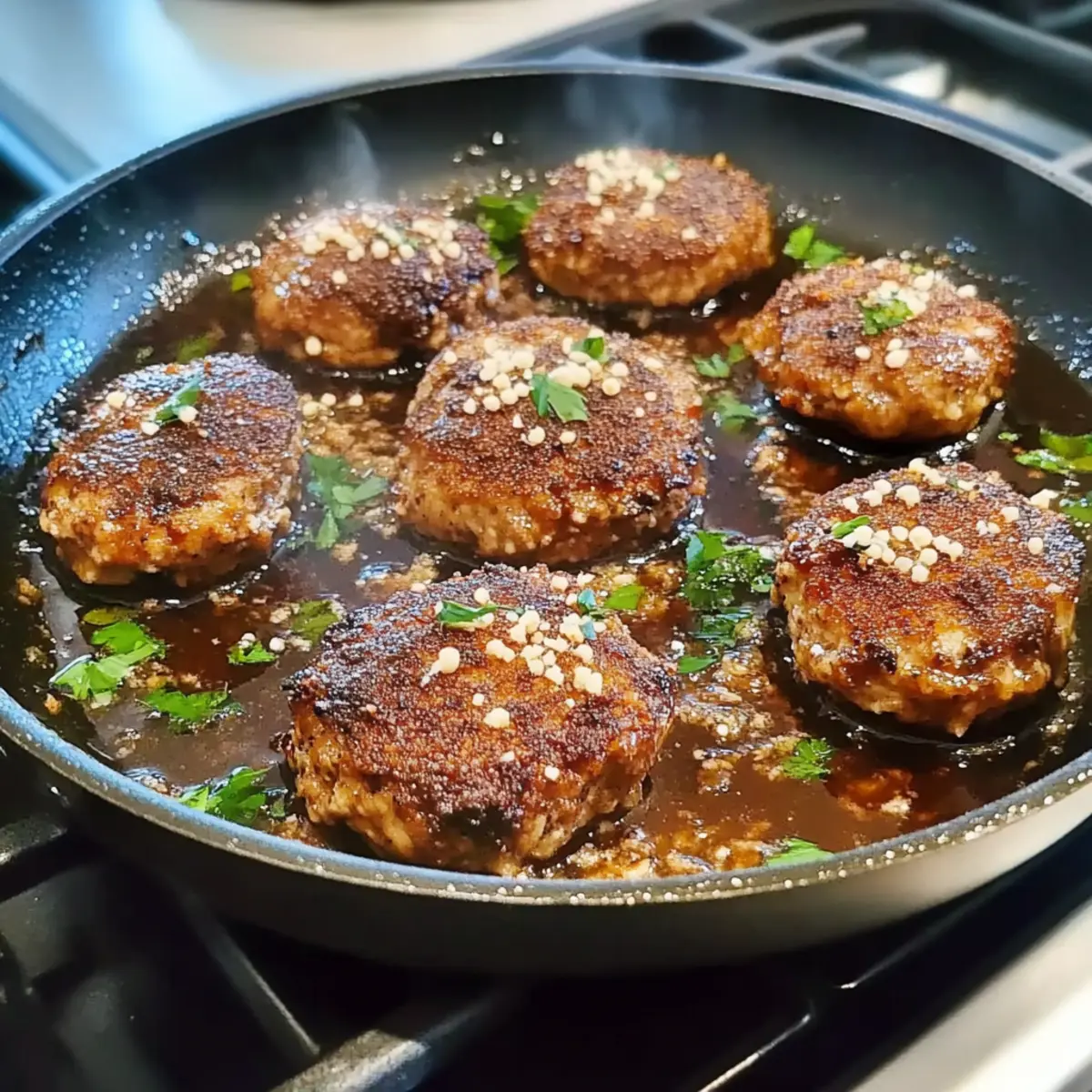 While the mushrooms are frying, whisk together soy sauce, chicken (or dashi) stock, mirin, and cornstarch in a small bowl until smooth. The cornstarch will thicken the sauce, giving it a glossy finish. Once the mushrooms are golden and flipped, pour this sauce over them, ensuring each stuffed mushroom is well coated. This savory gravy is essential to complementing the rich flavors of the Chicken Stuffed Mushrooms.