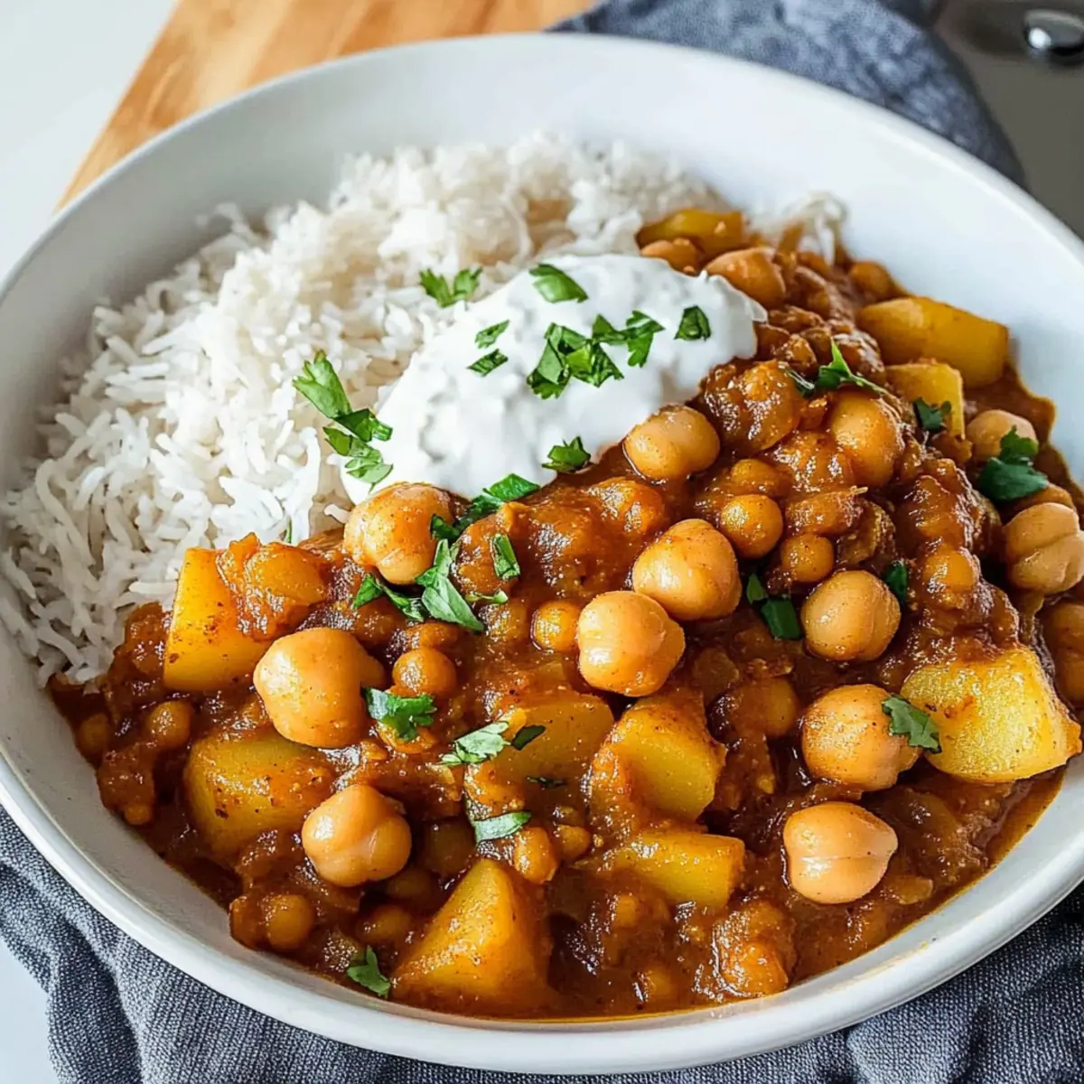 If the spiciness level is a concern, you can mellow out the heat by adding more potatoes or chickpeas, which will absorb some of the spice. Alternatively, a bit of coconut milk or yogurt can also help to cool things down, providing a creamy balance to the heat.