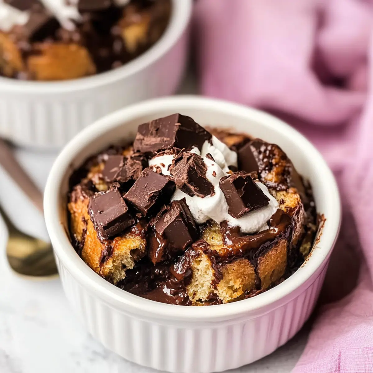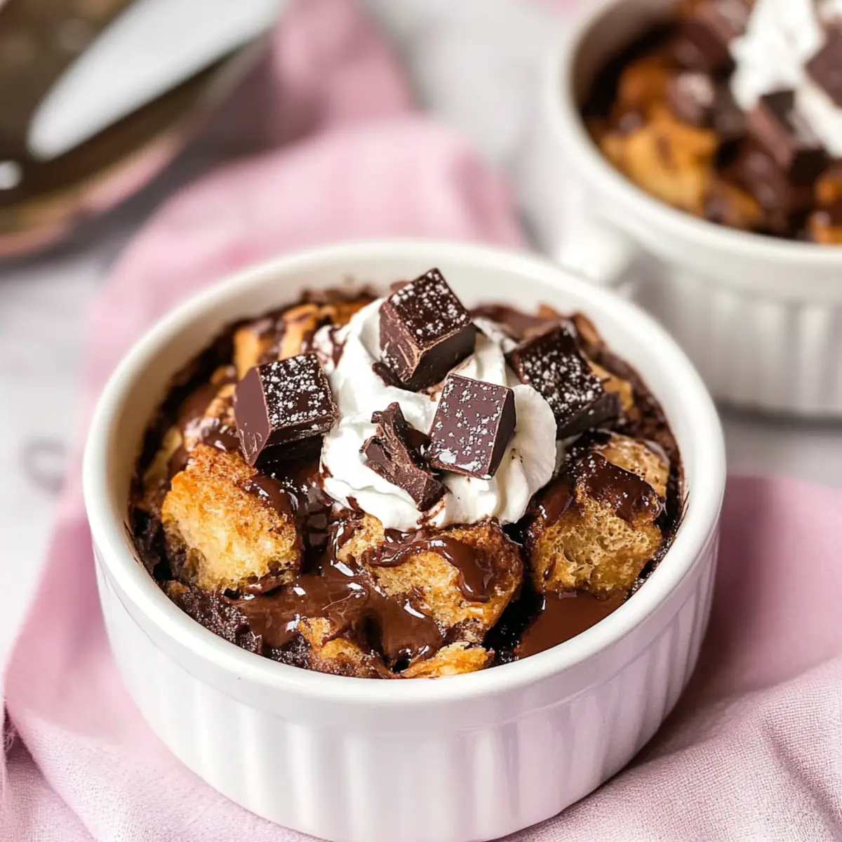 Once baked, remove the Chocolate Bread Pudding from the oven and let it cool slightly. Serve warm, optionally topped with a dollop of whipped topping for an extra creamy finish. Each bite promises a deliciously rich chocolate experience, perfect for savoring alone or sharing with someone special.