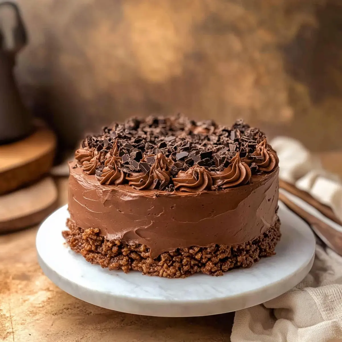 One day, as I was rummaging through the pantry, I stumbled across a forgotten box of Rice Krispies, and an idea sparked in my mind: why not elevate my chocolate cake game with a delightful crunch? This Chocolate Crunch Cake is my whimsical solution to satisfying those chocolate cravings while adding a fun twist. It’s decadently rich, with layers of soft cake and crispy chocolate-covered Rice Krispies, all enveloped in a luscious whipped ganache frosting. Plus, it’s a breeze to whip up—even for those weeknight baking adventures. Whether it’s a birthday celebration or just a simple treat for yourself, this cake is sure to impress. Who’s ready to dive into a slice of chocolatey bliss?