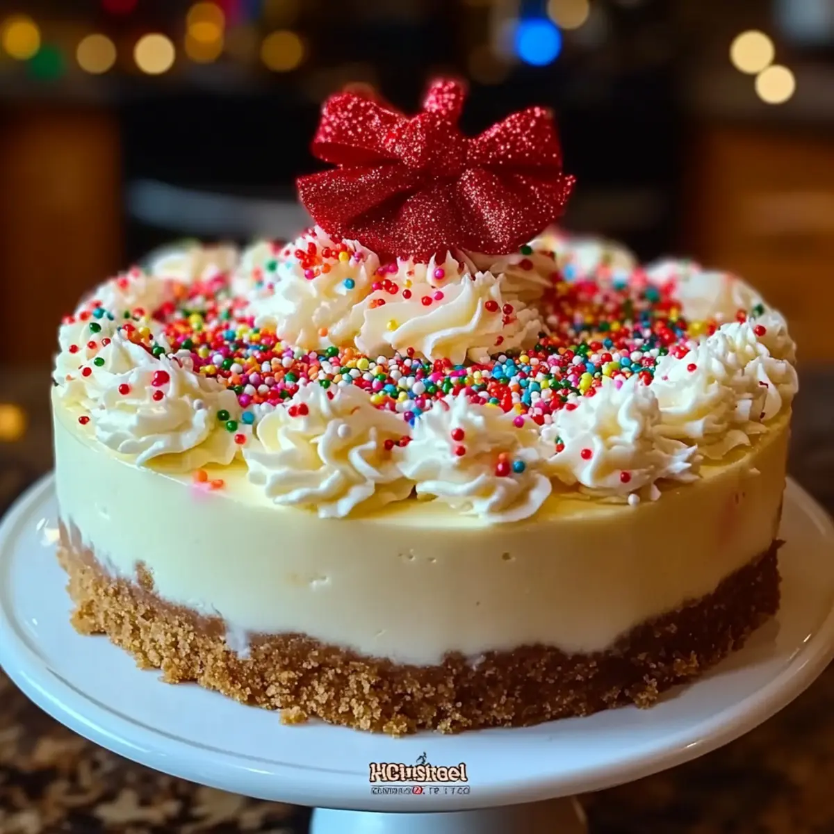 Visual Delight: With its colorful sprinkles and creamy topping, this cheesecake is a show-stopping centerpiece that will impress your guests and elevate your holiday table.