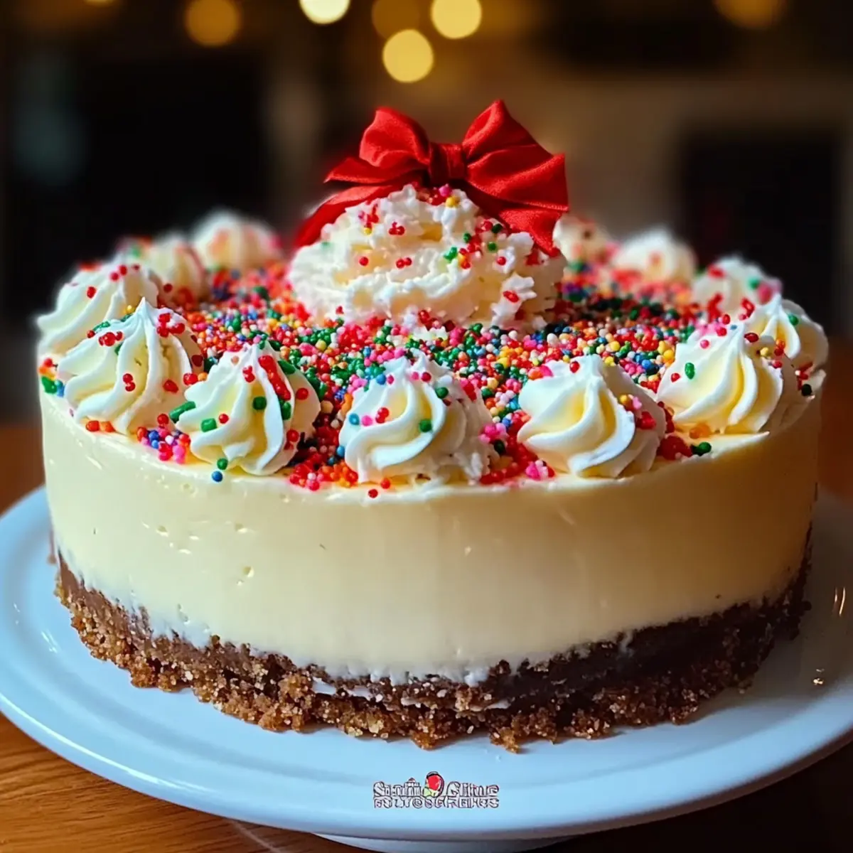 - Spread whipped cream over cheesecake and add festive sprinkles before serving.