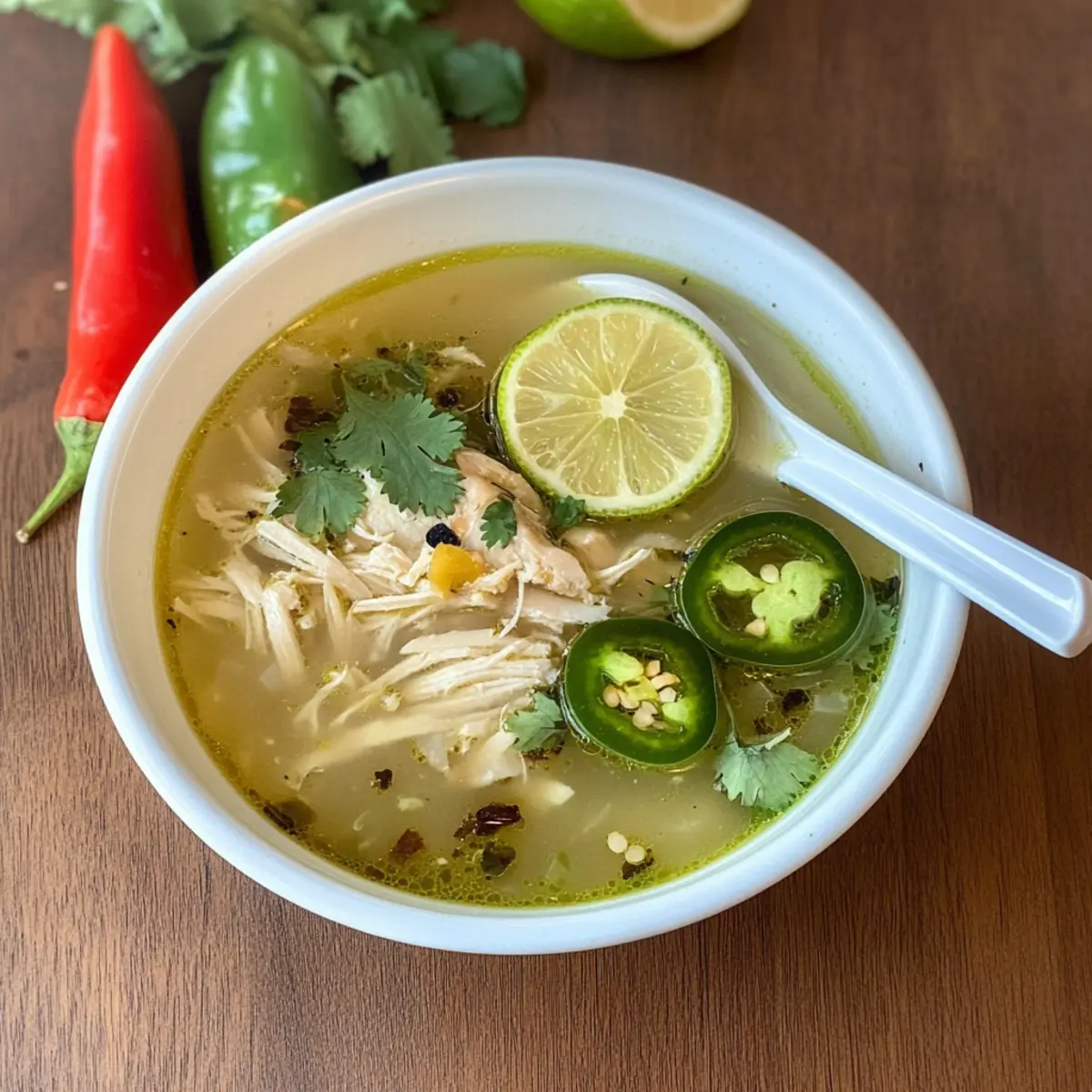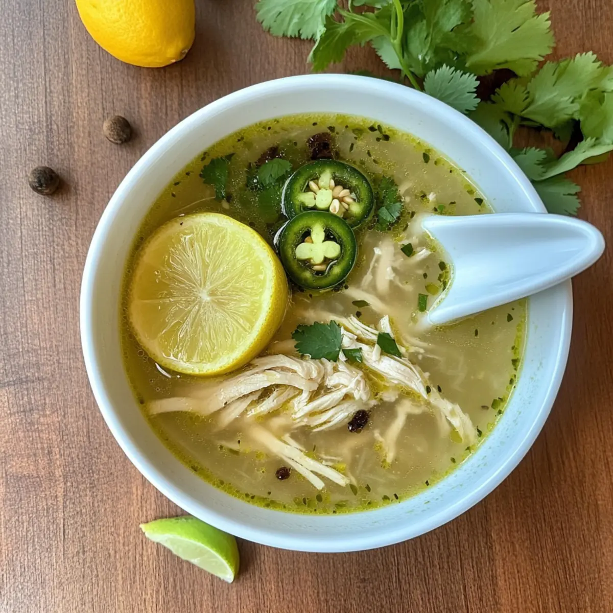 Return the shredded chicken to the pot along with the juice of one lemon, stirring everything together. Heat through for another couple of minutes, allowing the flavors to mingle. Serve your cilantro chicken soup hot, garnished with fresh jalapeños, black pepper, lemon slices, and a sprinkle of cilantro for that extra kick!