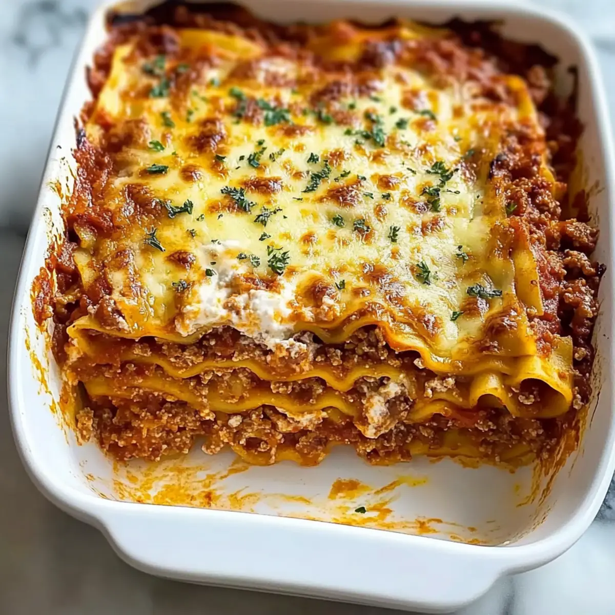 Creamy Alfredo: For a decadent twist, layer in some homemade alfredo sauce between the noodle layers to complement the tomato sauce beautifully. If you’re intrigued, check out my Decadent Alfredo Lasagna Soup for more creamy goodness!