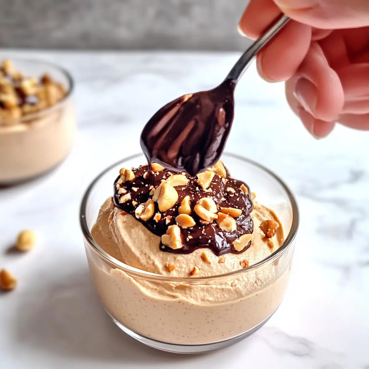 Once the mousse has chilled and thickened, scoop it into serving bowls or jars. Drizzle the melted chocolate generously over the top and finish with a sprinkle of chopped peanuts for added crunch and flavor. The visual appeal and sumptuous layers will make your Cottage Cheese Peanut Butter Mousse a standout dessert that pleases anyone’s palate.