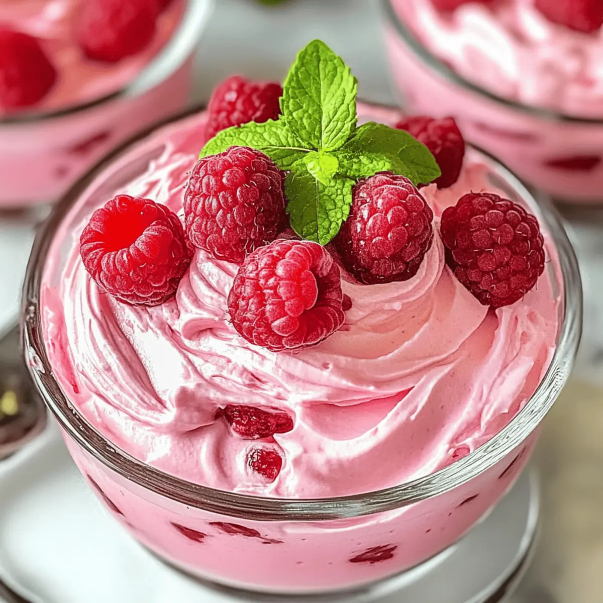 When ready to serve, remove the mousse from the fridge. For a lovely finishing touch, garnish each glass with fresh raspberries and a sprig of mint. This not only enhances the presentation but adds a pop of color, making your Cottage Cheese Raspberry Mousse look as delightful as it tastes—and it’s time to dig in!