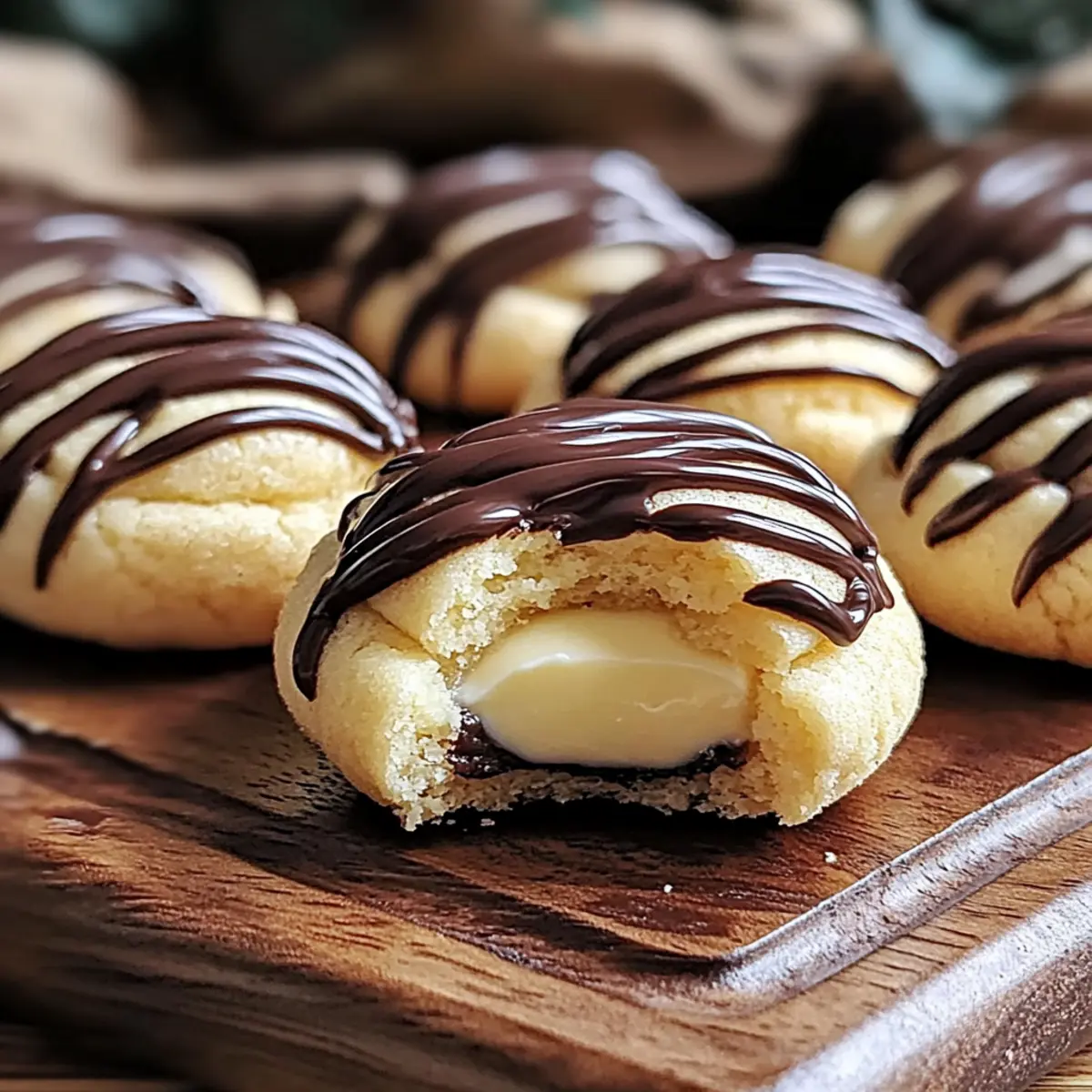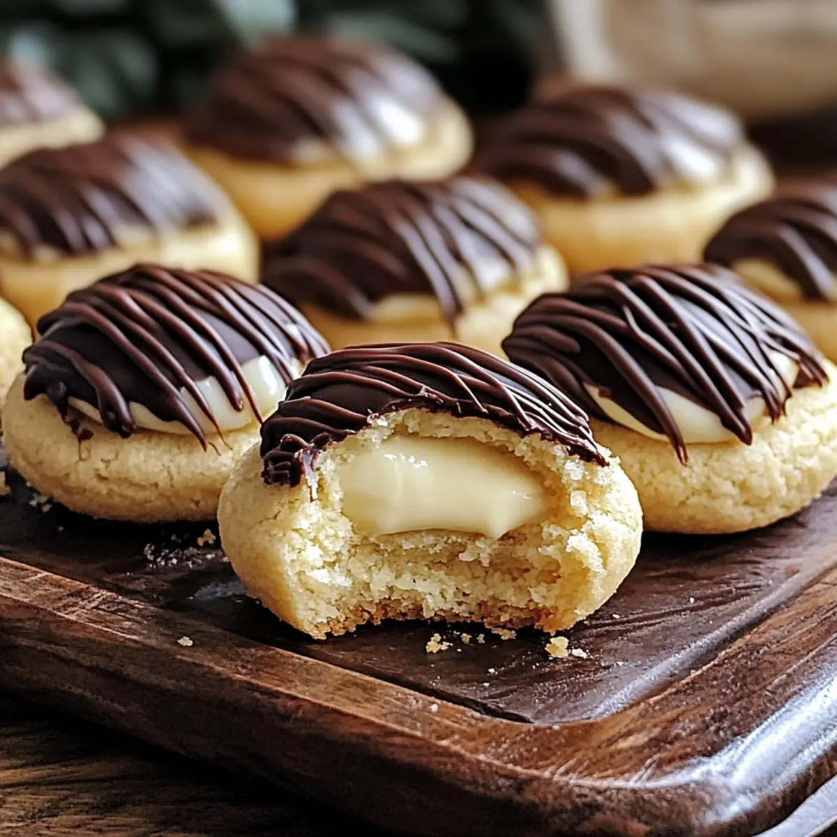 Using a spoon or a piping bag, drizzle the melted chocolate over each filled cookie. Allow the chocolate to set for about 10-15 minutes at room temperature. Patience is key—this will create a beautiful glossy finish. Enjoy the delightful cream pie cookie bites once the chocolate is firm!