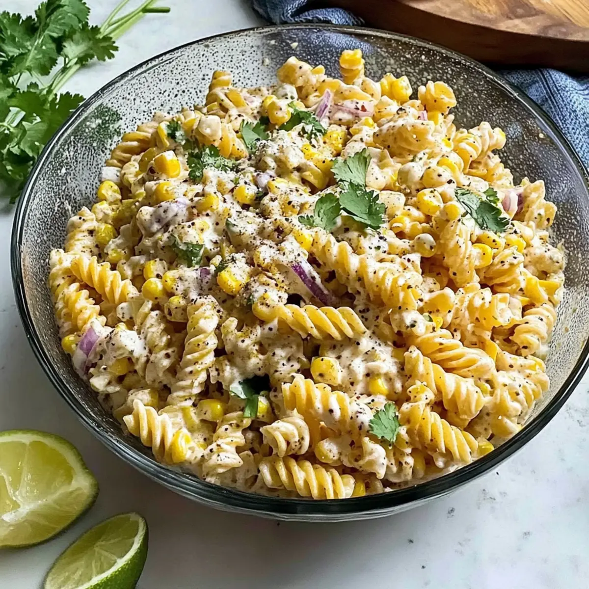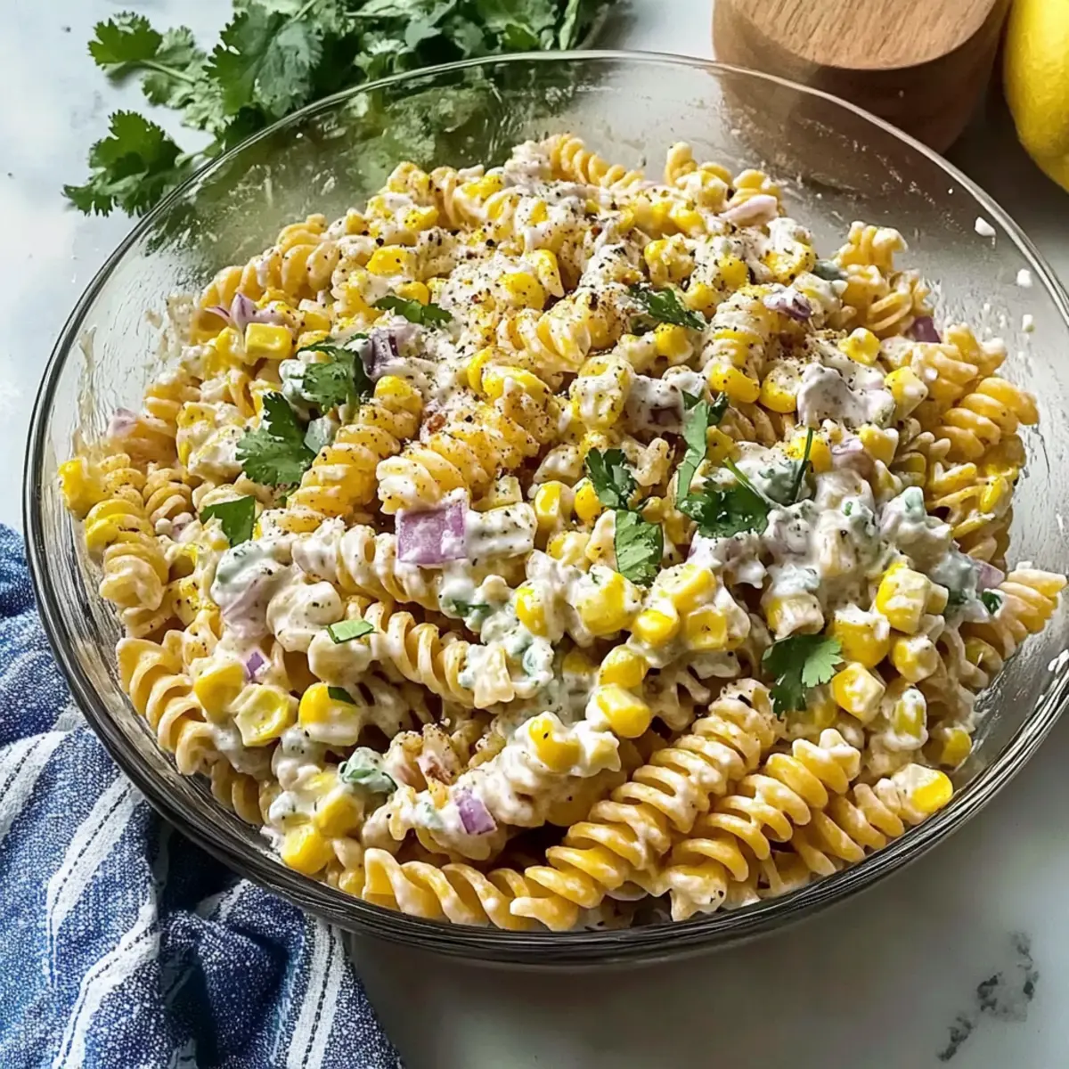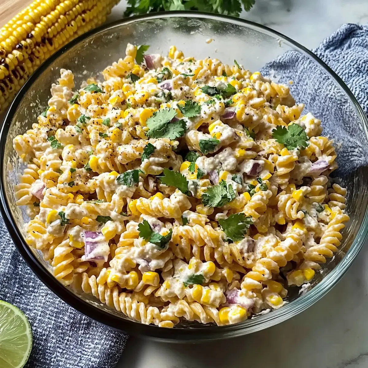 Fresh Garden Salad: A light salad dressed in a zesty vinaigrette brings freshness and crunch, perfectly offsetting the creamy richness of the elote pasta salad.