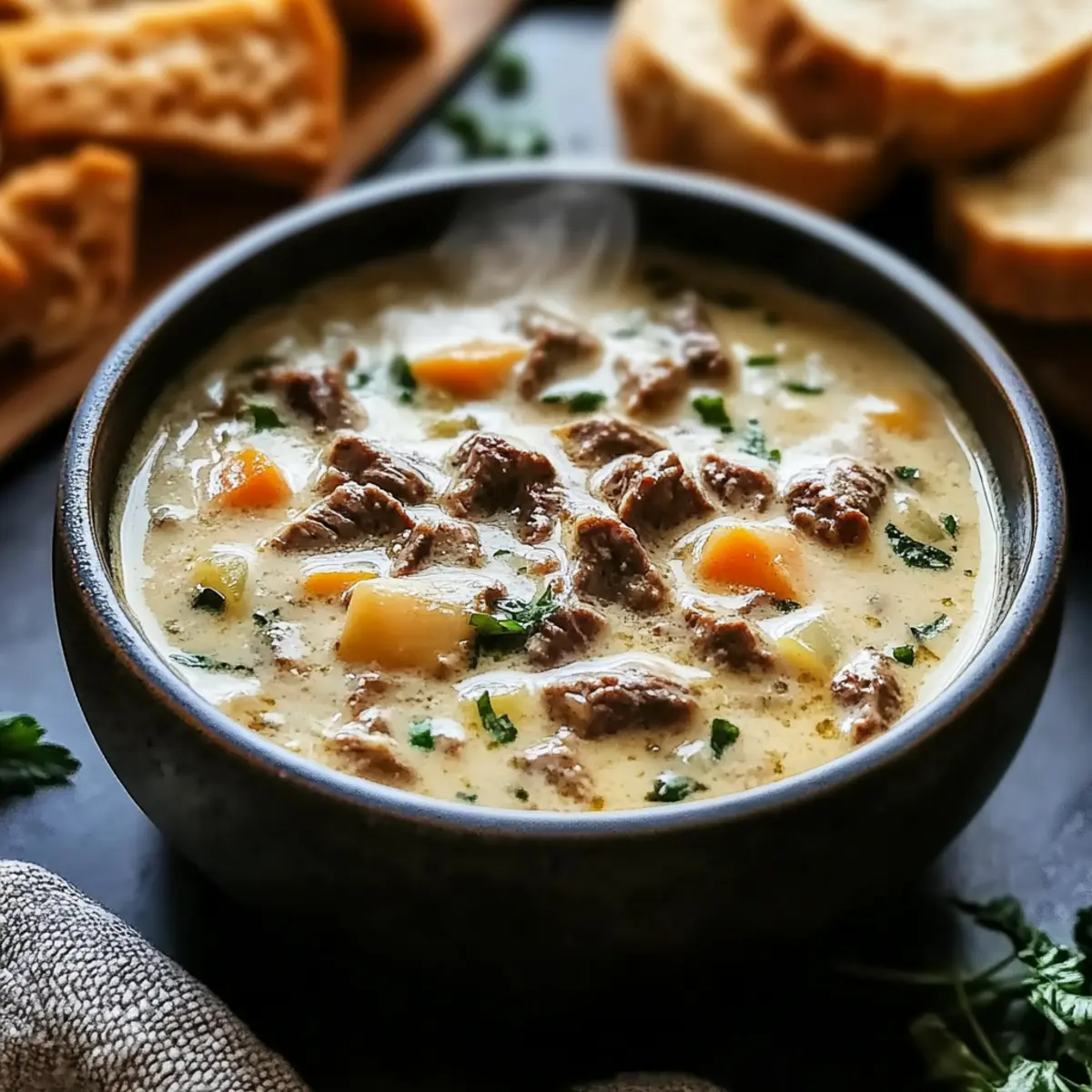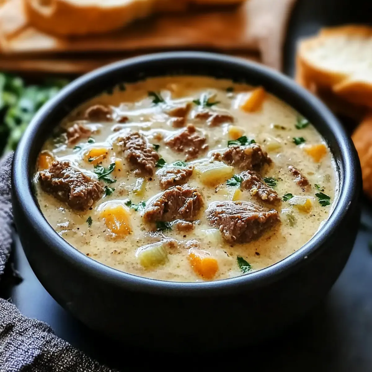 Creamy Philly Cheese Steak Soup for Ultimate Cozy Comfort