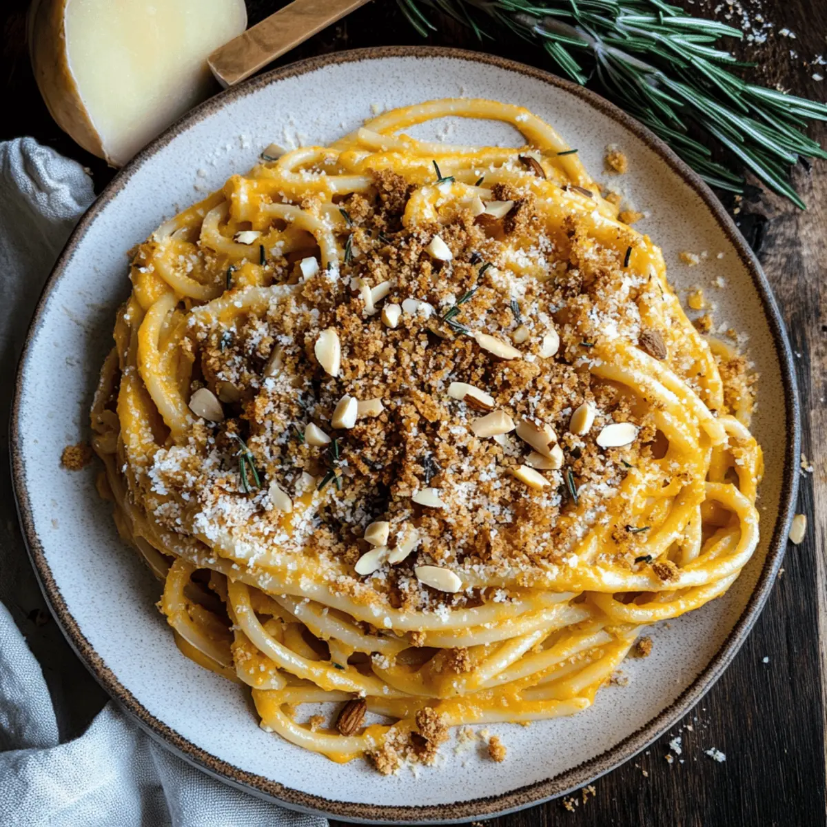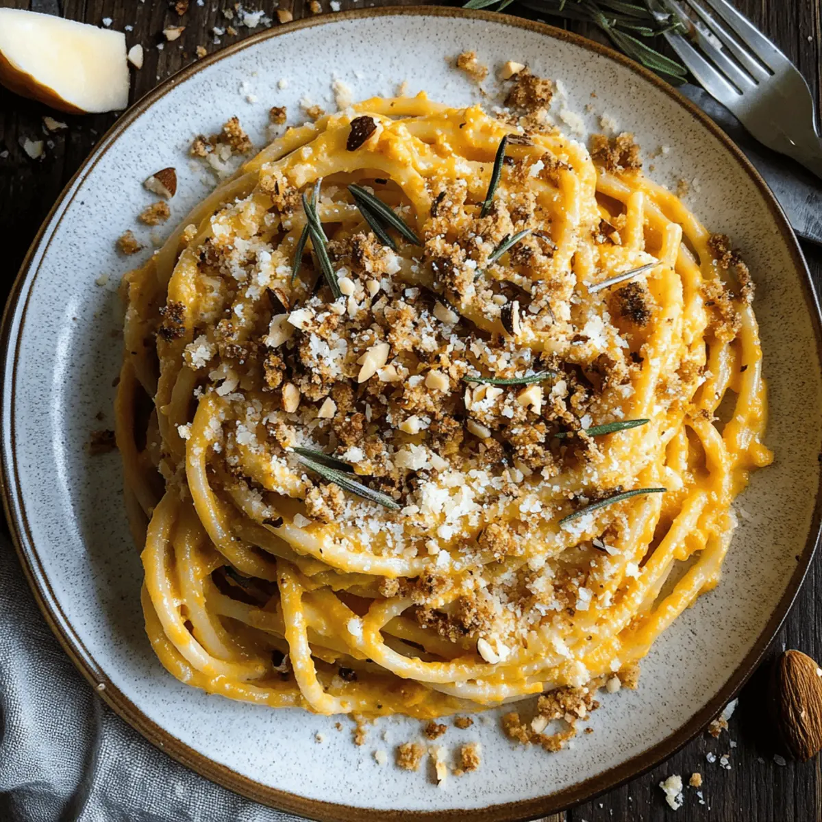 Creamy Pumpkin Pasta with Rosemary Almond Breadcrumbs Bliss