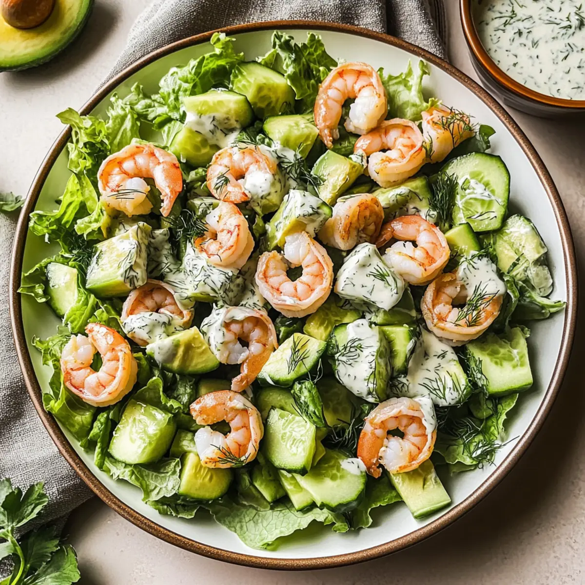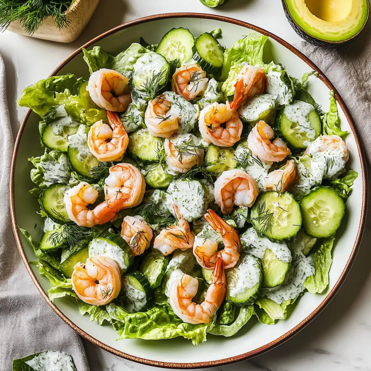 These Creamy Shrimp Avocado Salads are perfect for meal prep, allowing you to savor homemade goodness even on your busiest days! You can cook and cool the shrimp up to 24 hours in advance, storing them in an airtight container in the refrigerator. Prepare the dill Greek yogurt dressing a day prior as well; simply store it in the fridge to keep it fresh and vibrant. As for the salad components, chop the romaine and cucumbers ahead of time, but wait to add the avocado until just before serving to prevent browning. When it’s time to enjoy, toss everything together with the dressing, and you’ll have a delightful, nourishing meal ready to enjoy in minutes!