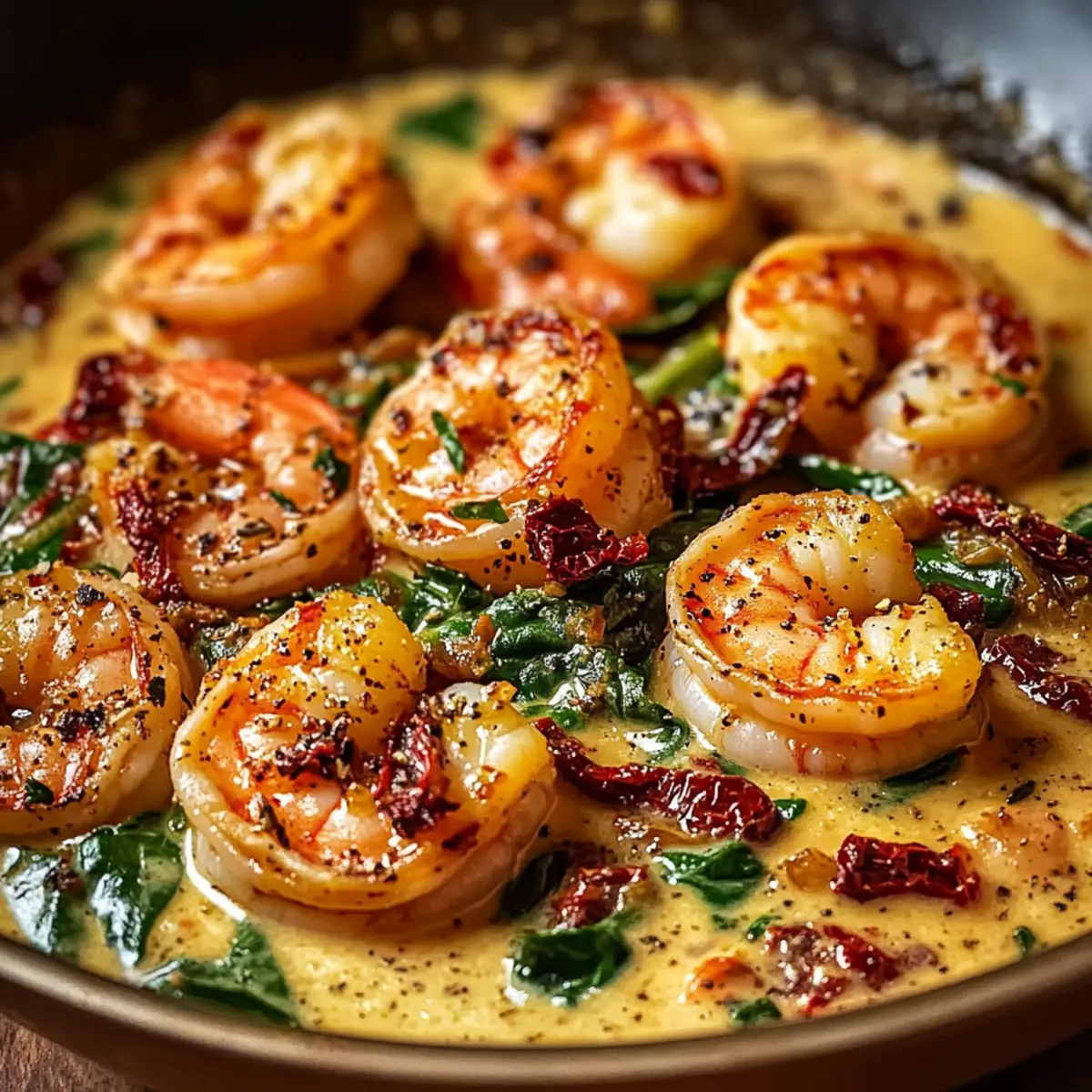 As I flipped through my favorite Italian cookbooks, a rich aroma wafted from the kitchen, reminding me of cozy dinners spent around the table with loved ones. That’s when I realized it was the perfect time to whip up Creamy Tuscan Shrimp with Spinach and Sun-Dried Tomatoes. This dish not only brings together tender shrimp and vibrant greens in a velvety cream sauce, but it’s also a lifesaver for busy weeknights! With a quick prep time and the flexibility to swap ingredients, you can tailor it to your taste or dietary needs. Whether you’re looking to impress guests or just treat yourself after a long day, this dish is sure to become a fast favorite. So, are you ready to dive into the comforting flavors of Italy? Let’s get cooking!