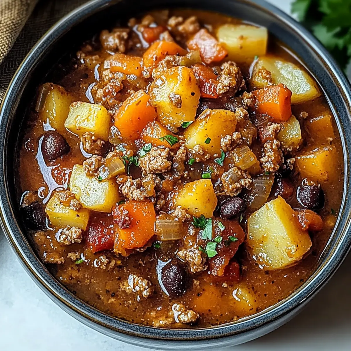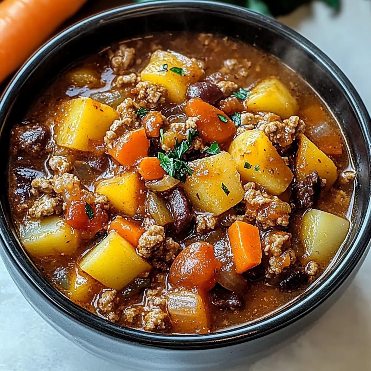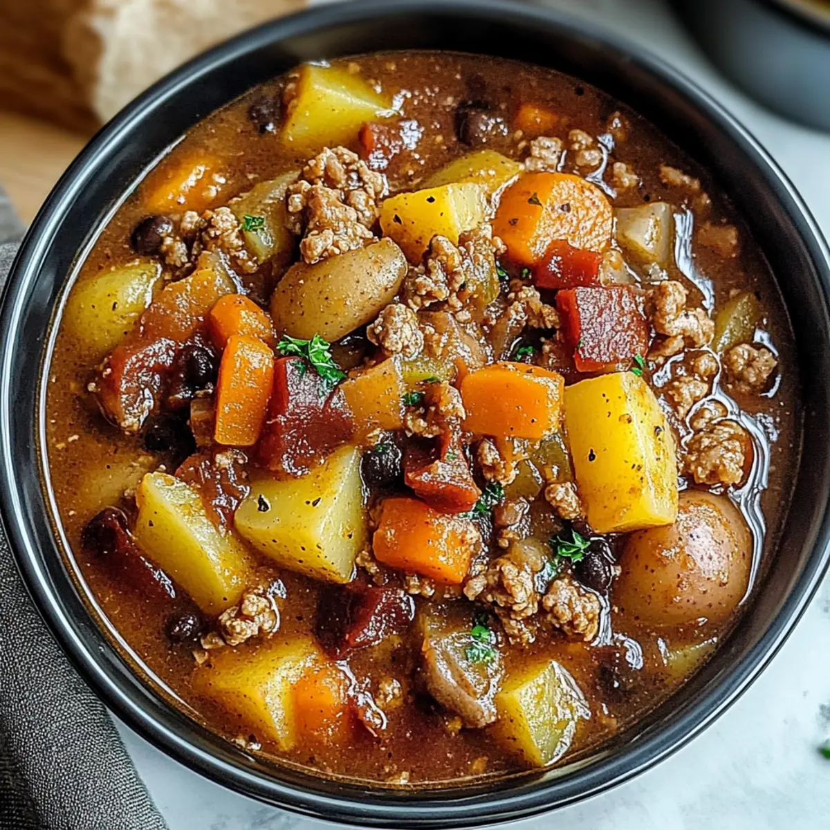 For a vegetarian version of this stew, you can replace the ground beef with plant-based crumbles or omit it entirely. Substitute the beef broth with vegetable broth, and incorporate more beans or lentils for a protein boost. Feel free to add extra vegetables like zucchini or bell peppers for more texture and flavor!