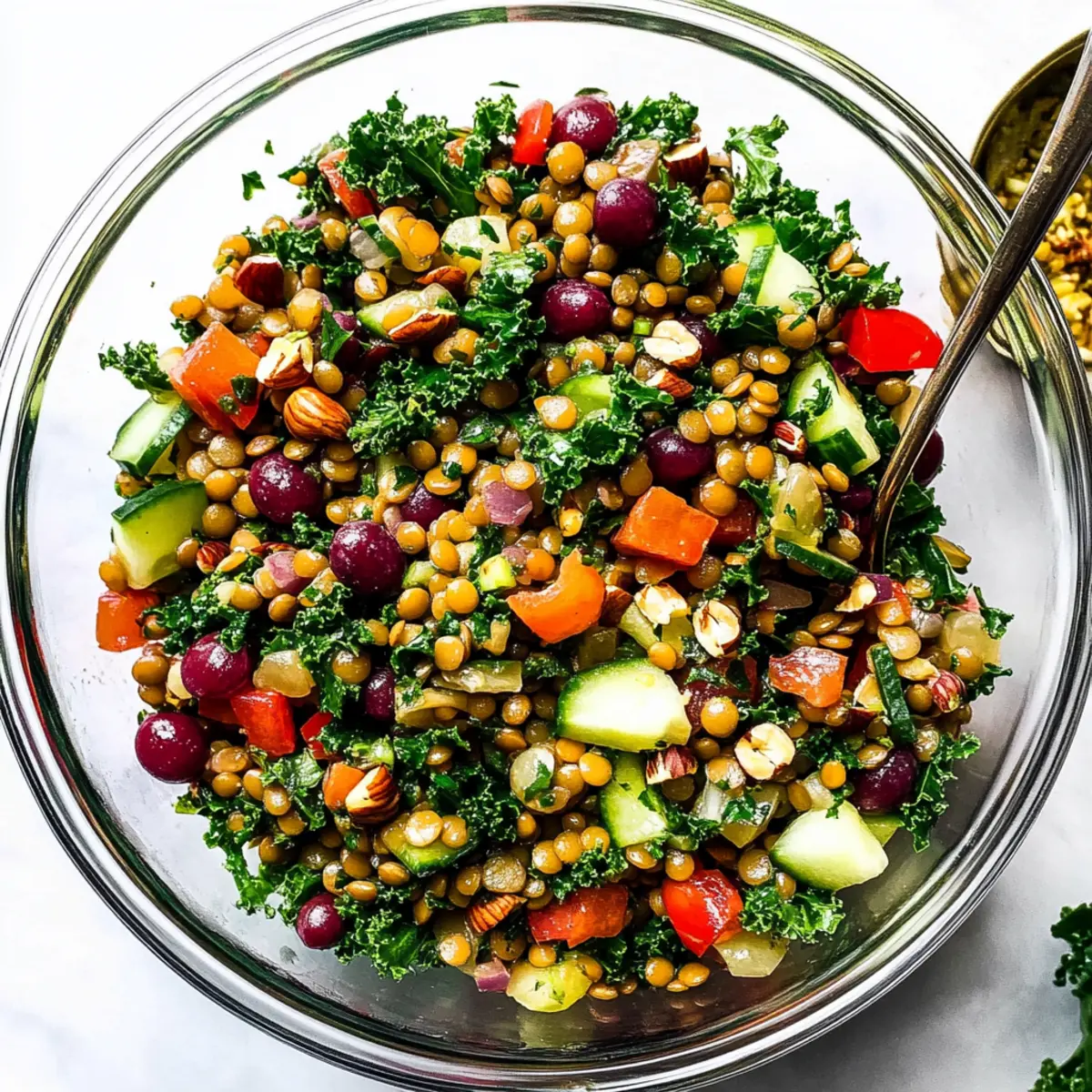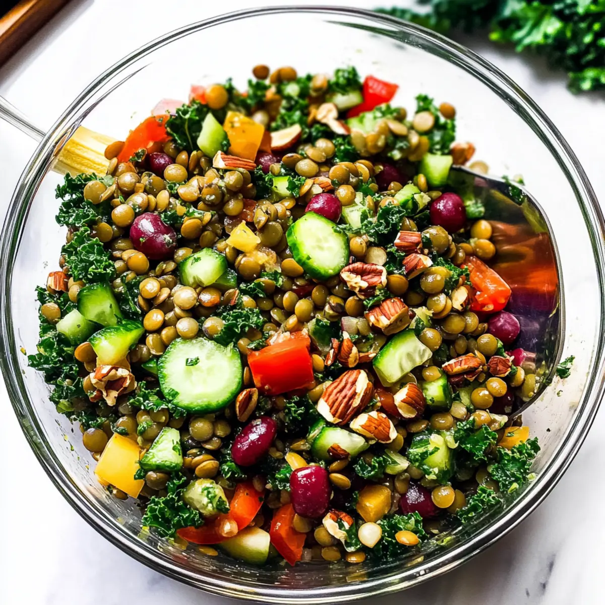 These Crunchy Lentil Salad components are perfect for meal prep! You can cook the lentils up to 3 days in advance, allowing them to cool and refrigerate in an airtight container. The chopped vegetables (bell pepper, cucumber, and kale) can also be prepared a day ahead and stored in the fridge, keeping them fresh and crunchy. To maintain the best flavor and texture, store the lemon herb dressing separately and whisk it together right before serving. Just toss everything together when you’re ready to enjoy your salad, and you’ll have a delightful, nutritious meal ready with minimal effort, saving you valuable time during busy weeknights!
