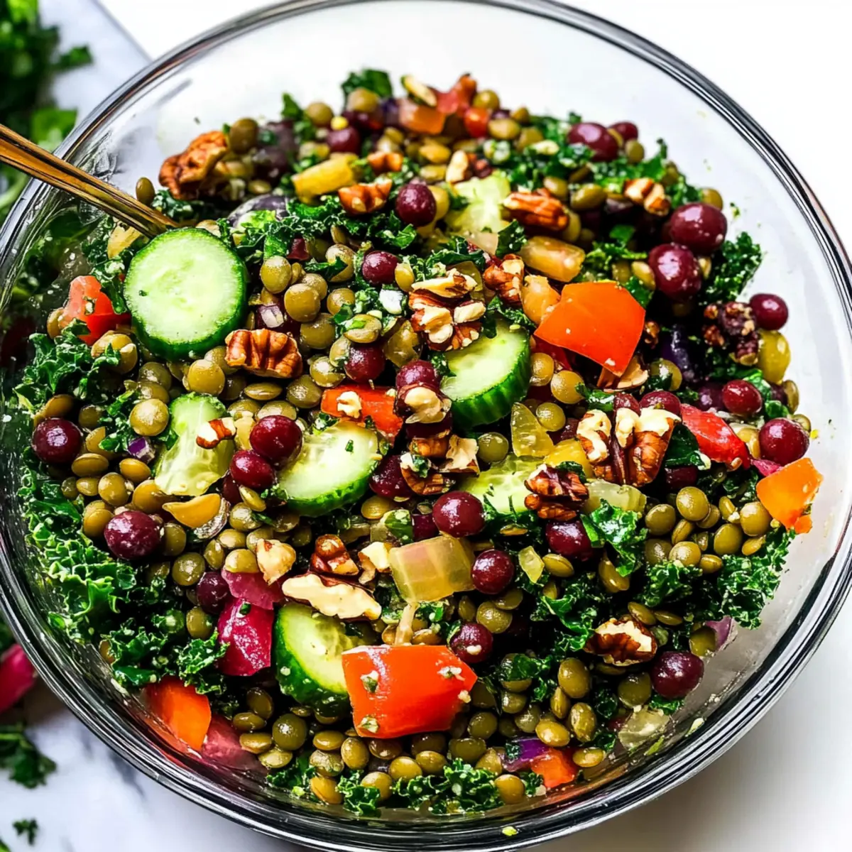 As I tossed a handful of vibrant vegetables into a bowl, the fresh aromas wafted around me, instantly brightening my kitchen. This Crunchy Lentil Salad has become my go-to for those busy days when I crave something nourishing yet light. Packed with plant-based protein from lentils, it boasts the delightful crunch of fresh veggies and the subtle sweetness of red grapes. In just a few easy steps, this salad transforms into a filling meal that’s perfect for meal prep, allowing you to savor delicious, homemade food all week long. Whether it’s served as a refreshing side or a stand-alone dish, I promise that every bite will leave you feeling satisfied. Are you ready to add a splash of color and nutrition to your table?