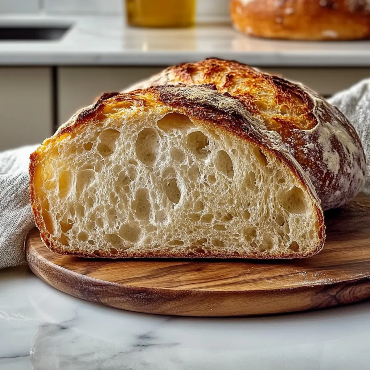 Very good question! To preserve the crunchy crust, wrap your Crusty Golden Sourdough Bread in a clean cloth or store it in a paper bag at room temperature for up to 3 days. Avoid storing it in plastic as it traps moisture and can lead to a soggy crust. If you plan to keep it longer, freezing is a great option!
