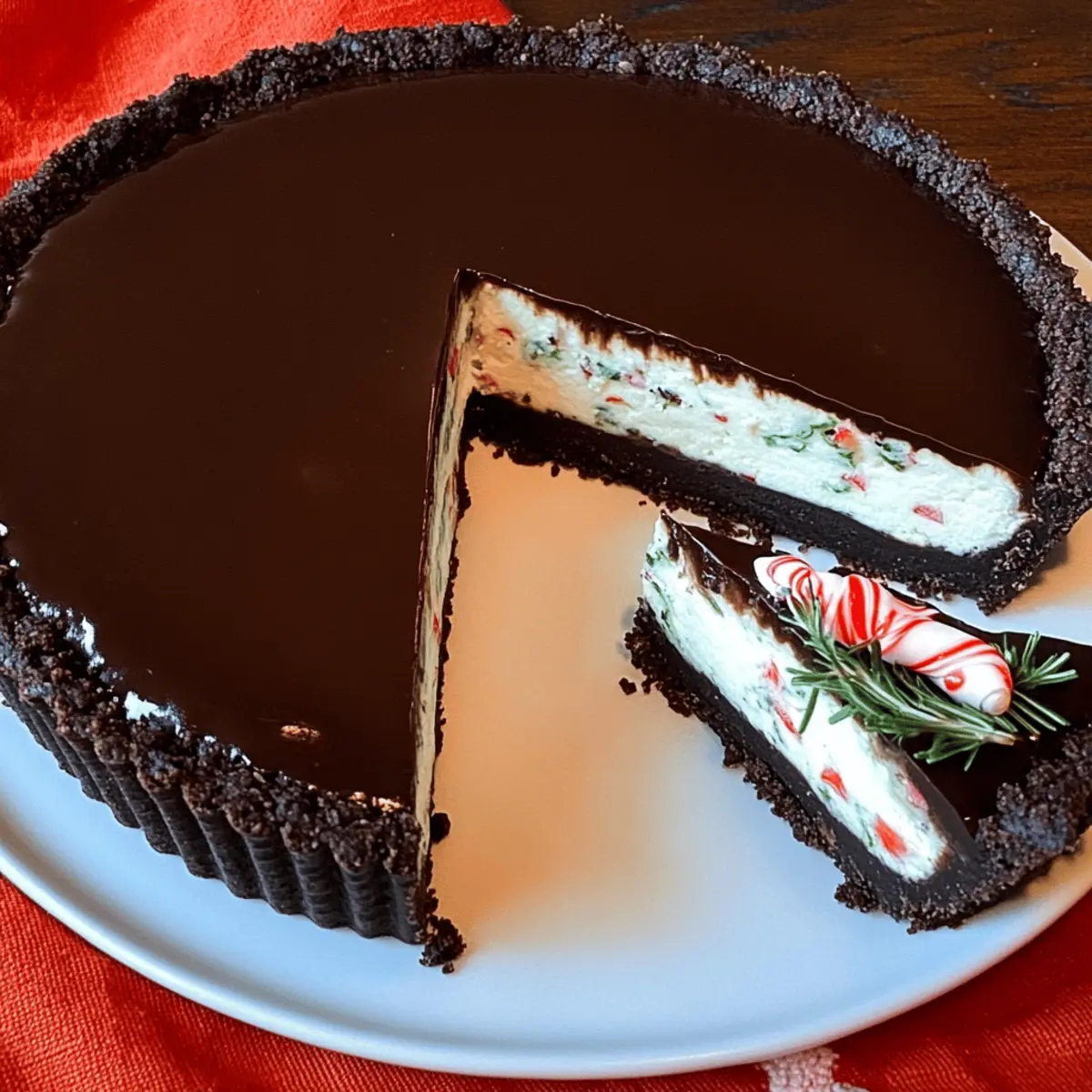 - Let the Dark Chocolate Peppermint Mousse Tart sit at room temperature for at least 1 hour after glazing to allow the glaze to set perfectly. Before serving, garnish with crushed candy canes for a festive touch. Slice and enjoy this indulgent, refreshing treat.