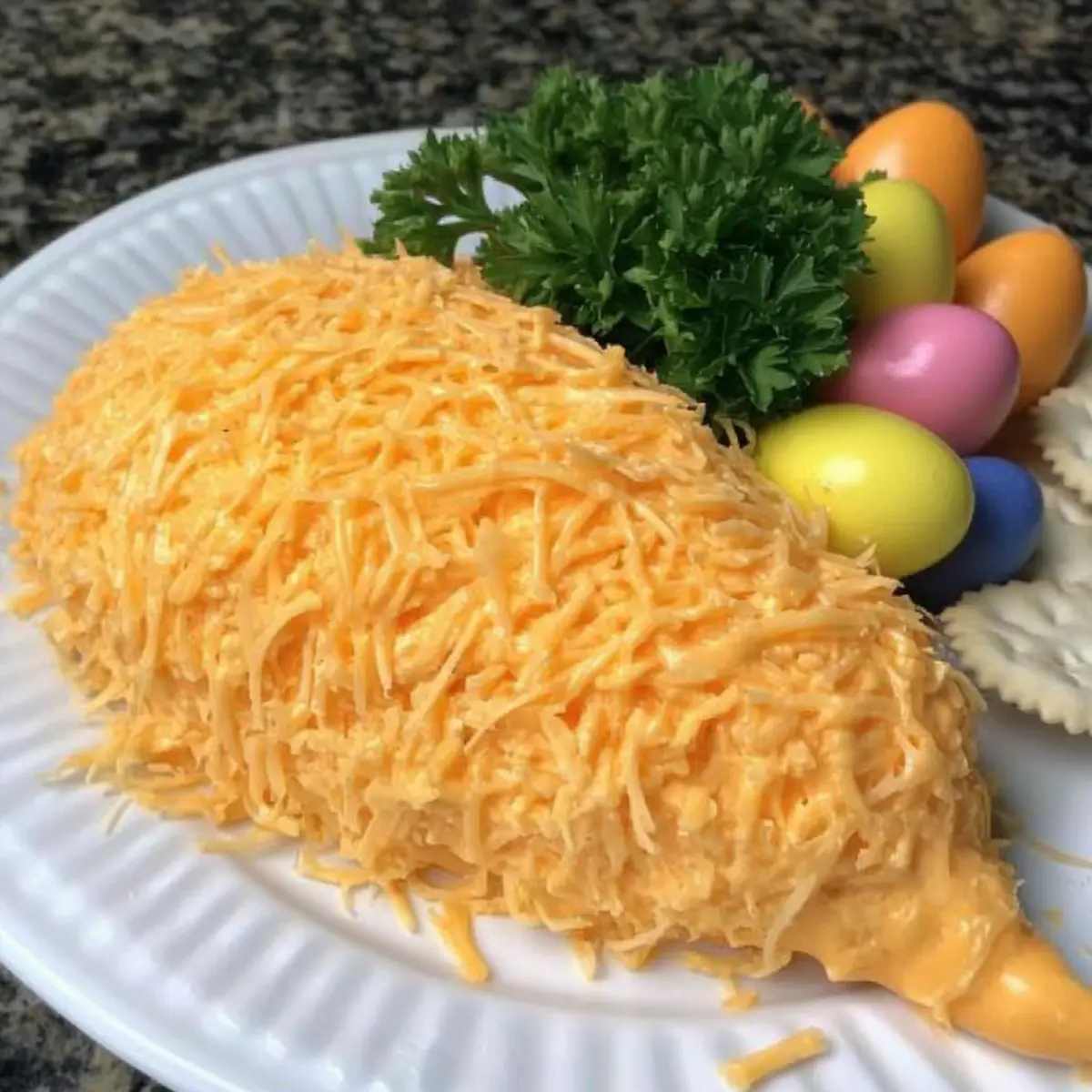 - Serve the Easter Cheese Ball on a platter with assorted crackers.