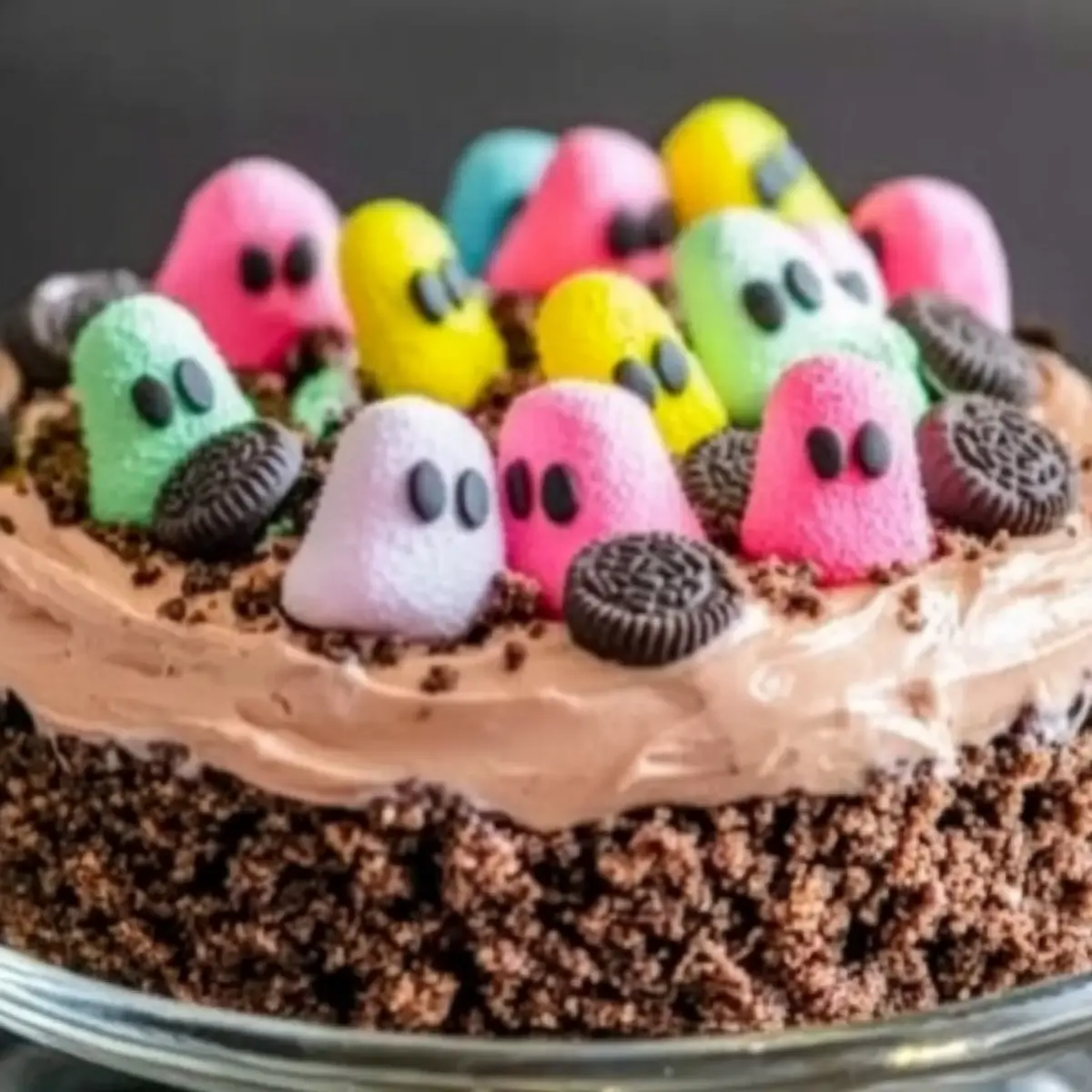- Just before serving, add festive marshmallow Peeps and colorful pastel candies on top.
