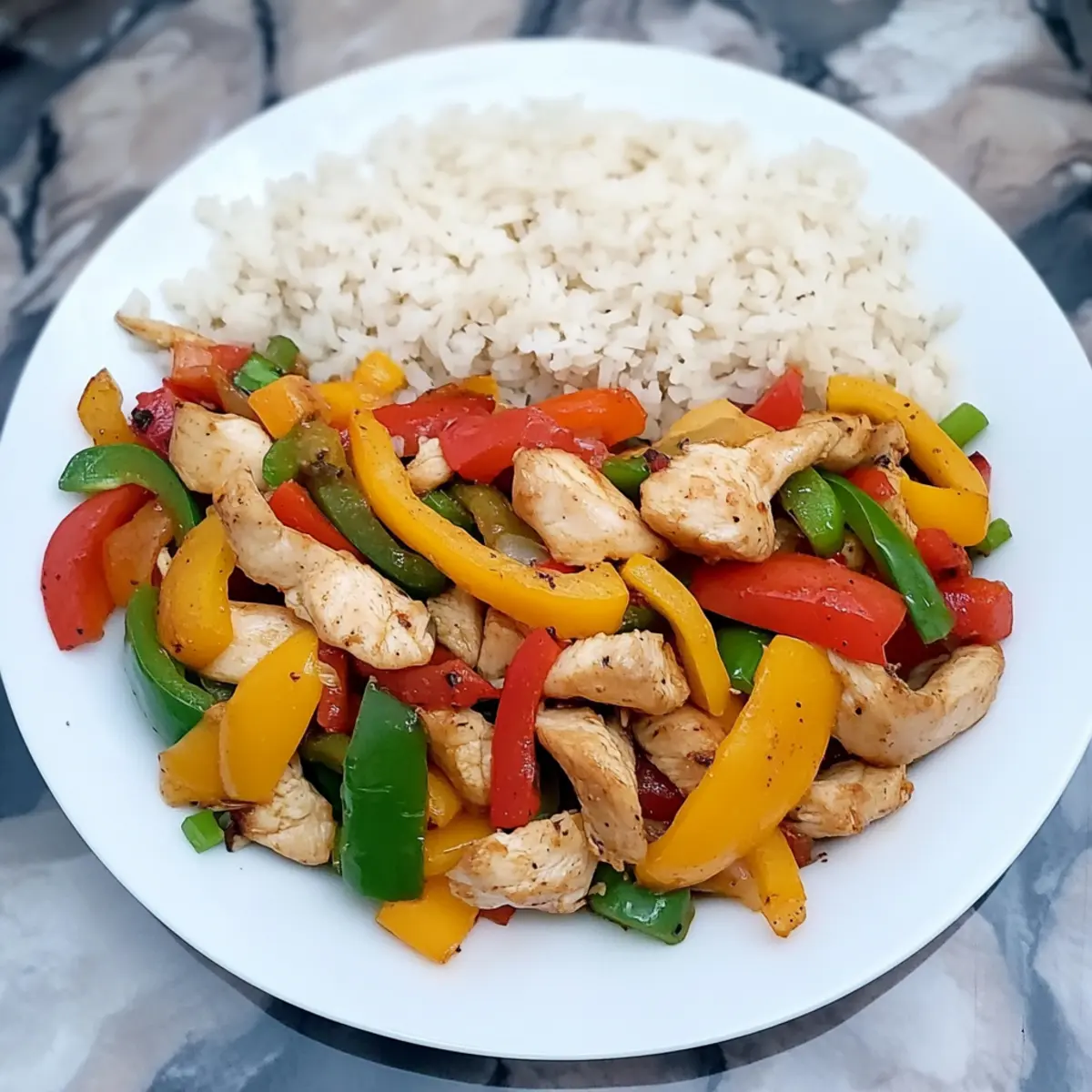 Steamed Jasmine Rice: Fluffy and aromatic, this rice is perfect for soaking up the savory stir-fry sauce and balances the dish nicely.
