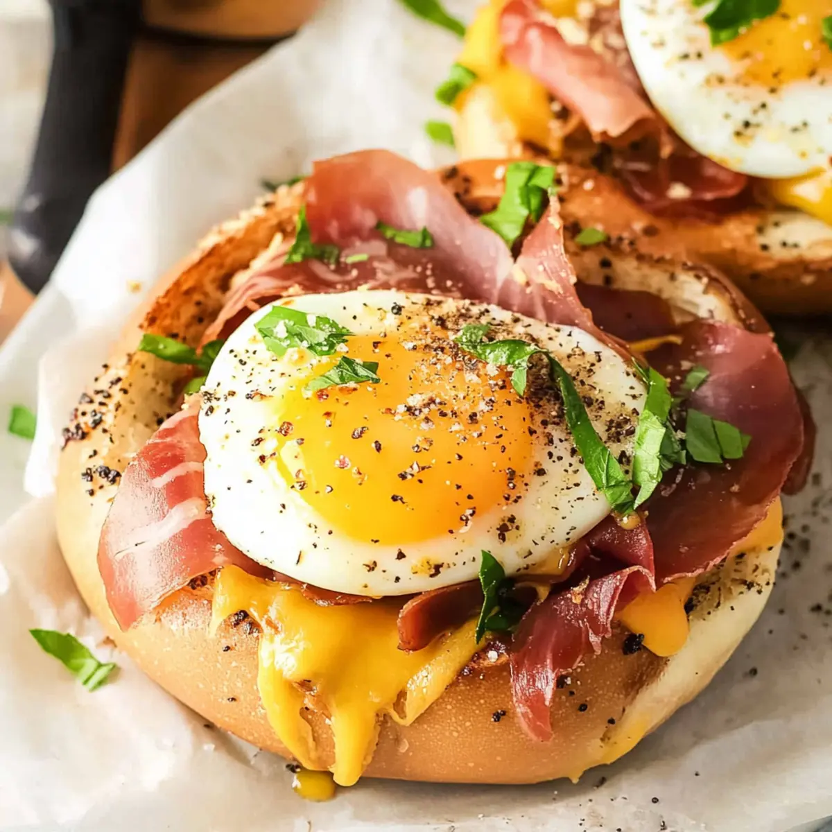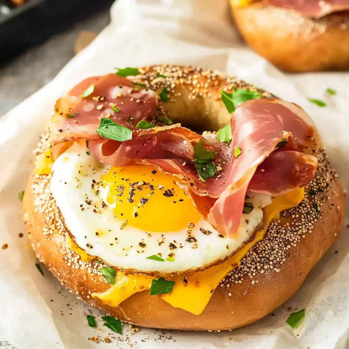 Savory Egg Prosciutto Bagel with Garlic Butter Bliss