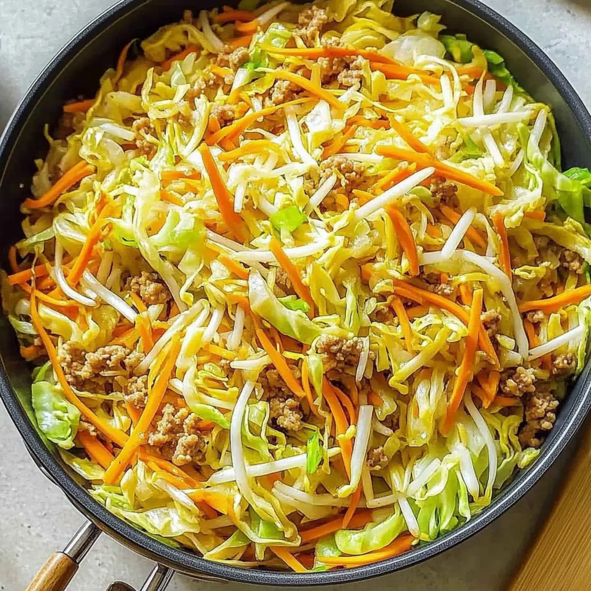 Toss in 4 cups of shredded cabbage and 1 cup of shredded carrots into the skillet. Sauté the mixture for an additional 4-6 minutes, or until the veggies become tender yet remain vibrant and crisp. The colors will brighten, and the aroma will fill your kitchen, promising a delightful meal is on the way.