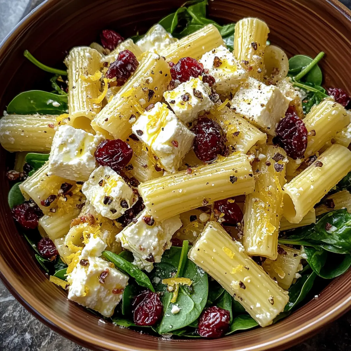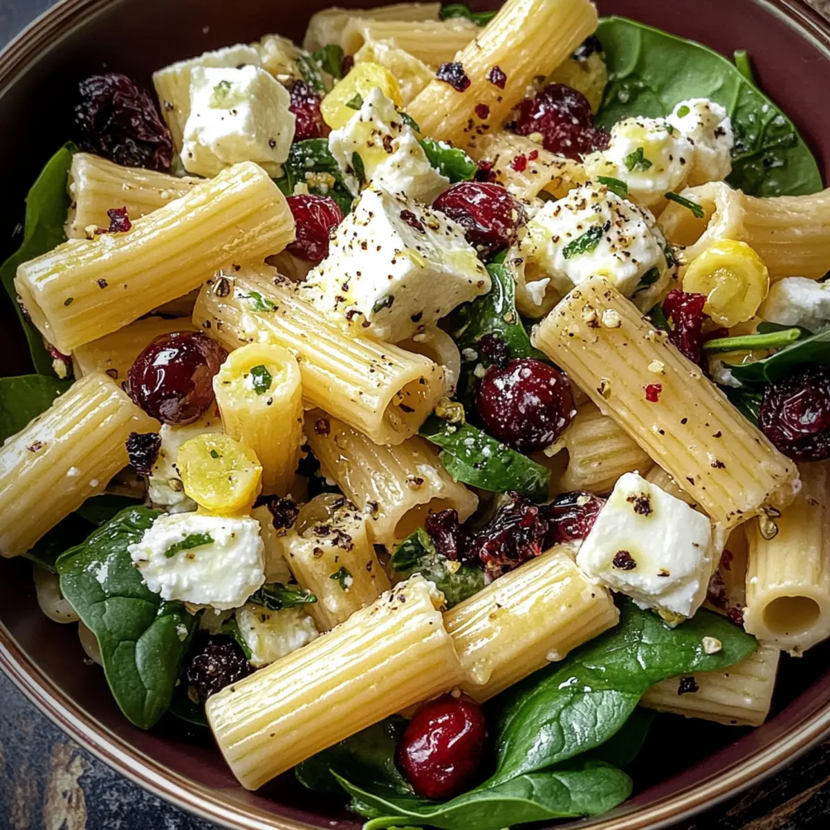 Picture a delightful table laid out with vibrant colors and enticing aromas, ready to elevate your Feta & Cranberry Rigatoni Salad experience.