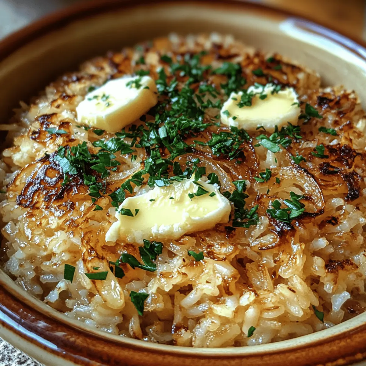 Ultimate Comfort Food: This dish is a delightful blend of buttery, fluffy rice infused with the rich, savory flavors of French onion soup, making it a comforting addition to any meal.