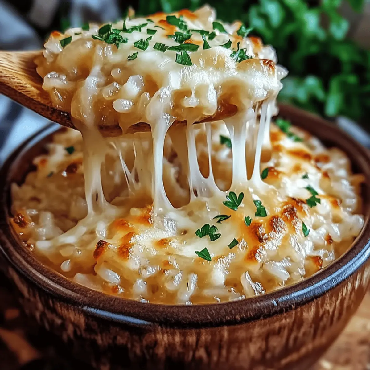 As I stirred the pot, the tantalizing aroma of caramelizing onions filled my kitchen, transporting me back to cherished family meals. This Creamy French Onion Butter Rice is the cozy comfort food I crave on chilly nights, effortlessly combining the richness of buttery rice, sweet caramelized onions, and savory broth into a heavenly dish. Perfectly versatile, this recipe can shine as a hearty main course or a luscious side dish at any gathering. Plus, with options for vegetarian broth and dairy-free cheese, it’s inclusive for all! Bursting with nostalgia and warm flavors, this dish invites you to slow down and indulge in the art of homemade cooking. Are you ready to create a dish that brings warmth and togetherness to your table?