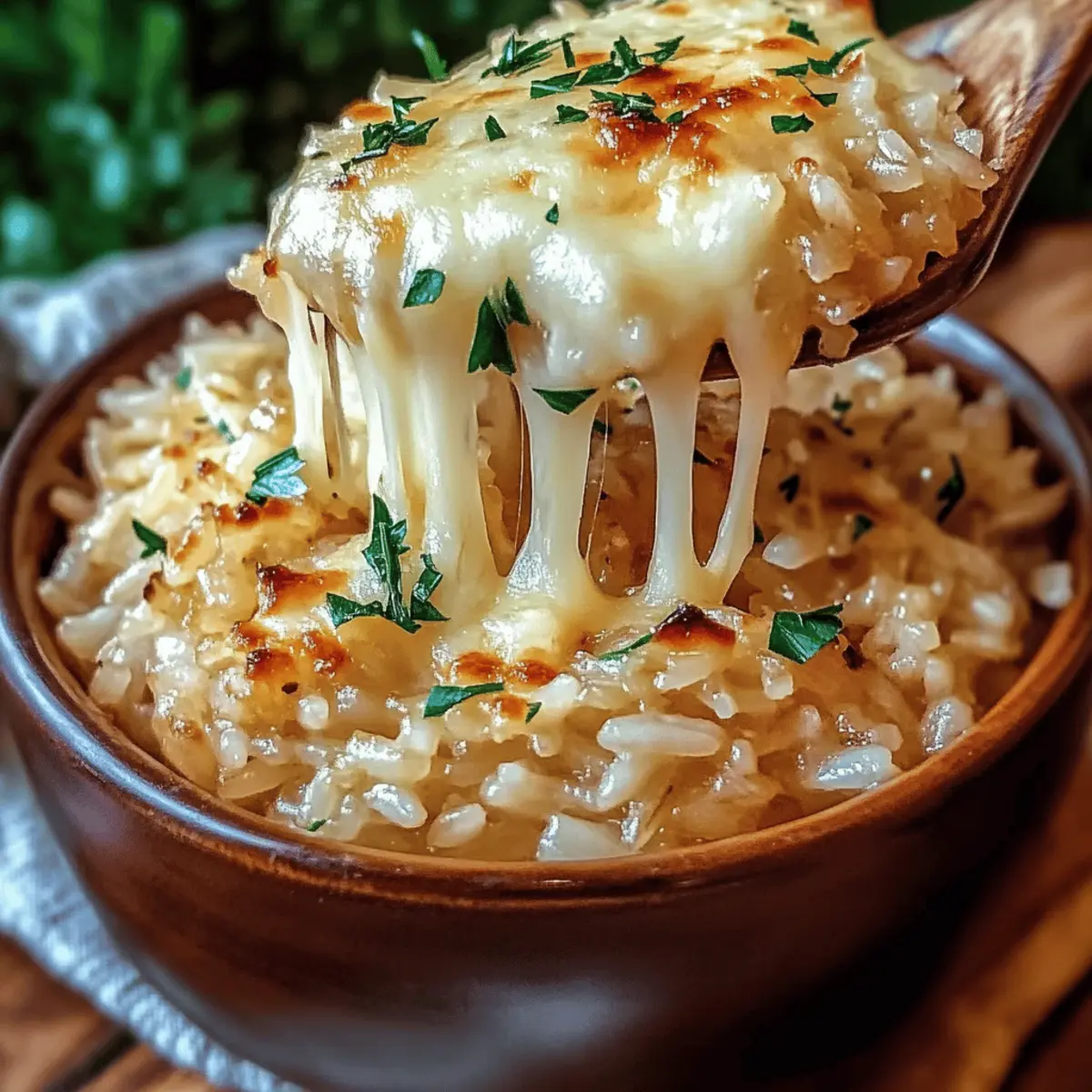 Let the dish sit covered for 5 minutes to allow the flavors to meld. Afterward, fluff the rice gently with a fork and garnish with freshly chopped parsley for a touch of color and brightness. Serve warm and enjoy the comforting fragrance of this French Onion Butter Rice as it beckons everyone to the table!
