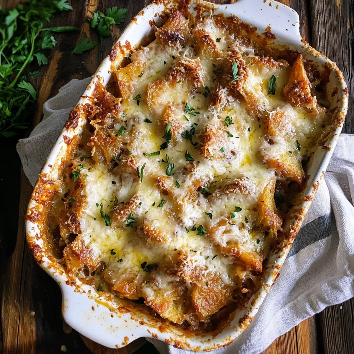 Preheat your oven to 350°F (175°C). Grease a 9×13-inch baking dish with a bit of olive oil or butter to prevent sticking. This step ensures an easy release for your finished French Onion Stuffing, allowing that delicious cheesy crust to shine!