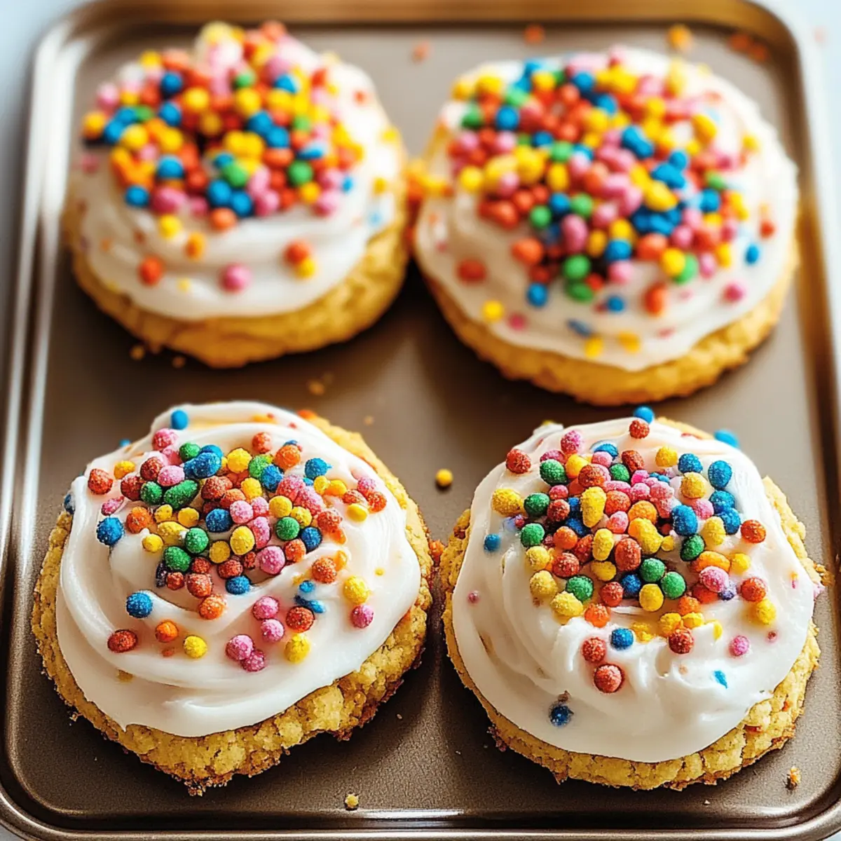 Colorful Surprise: These cookies are a visual feast, showcasing bright colors that instantly lift your mood. Nostalgic Flavor: Combining childhood cereal with a soft cookie base brings back delightful memories. Easy to Make: With simple ingredients and quick prep, even novice bakers can shine! Versatile Options: Customize with gluten-free flour or try different extracts for unique flavors. Whether for birthdays or casual snacks, these cookies will make everyone smile—pair them with a glass of milk for a complete treat!