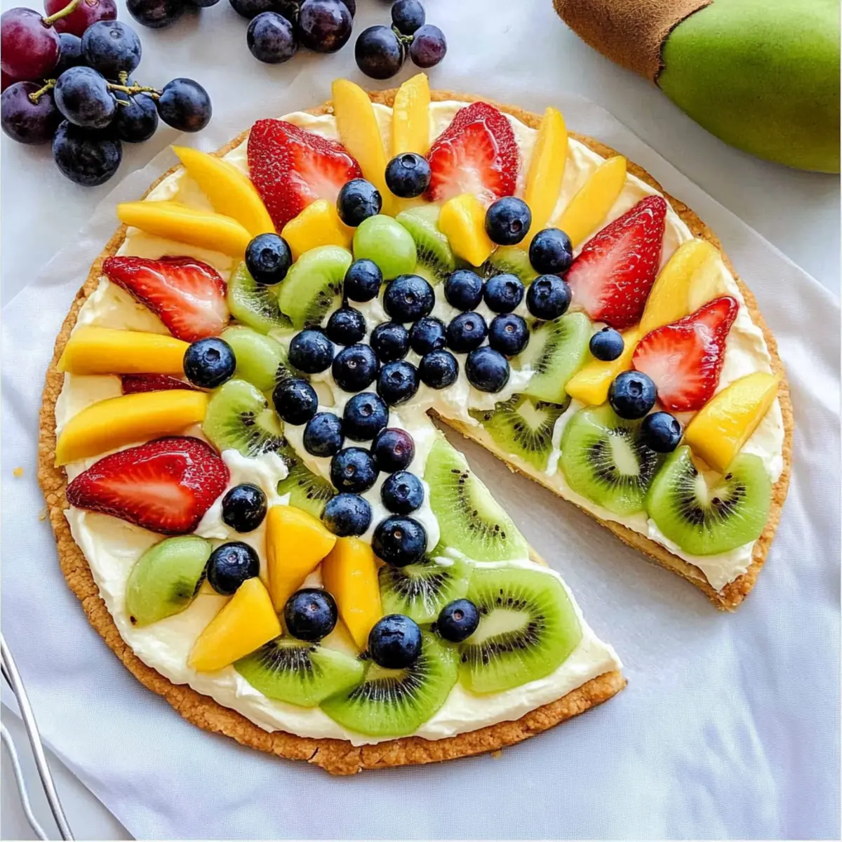 - Slice the fruit pizza into wedges and serve immediately for the best presentation.